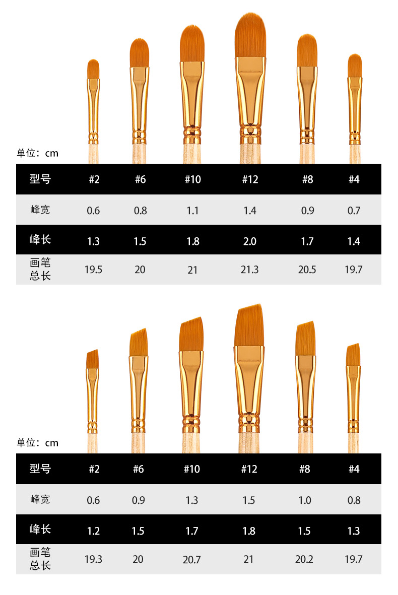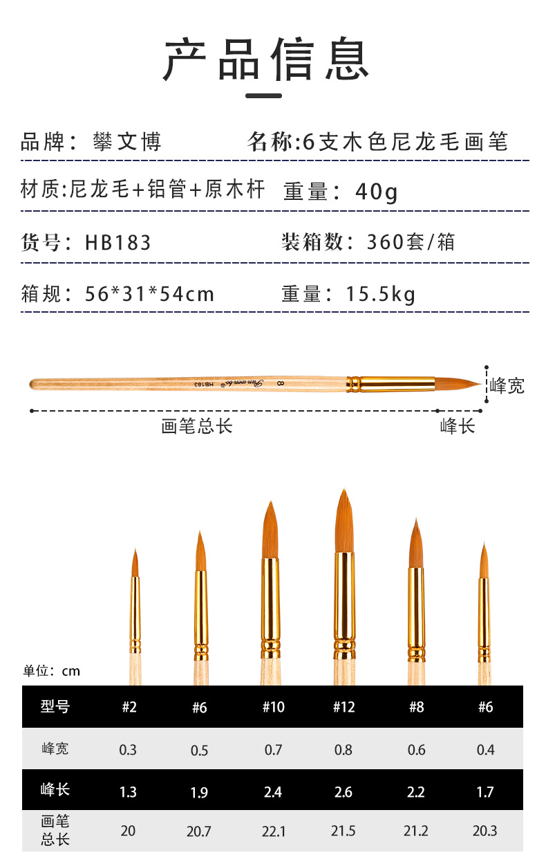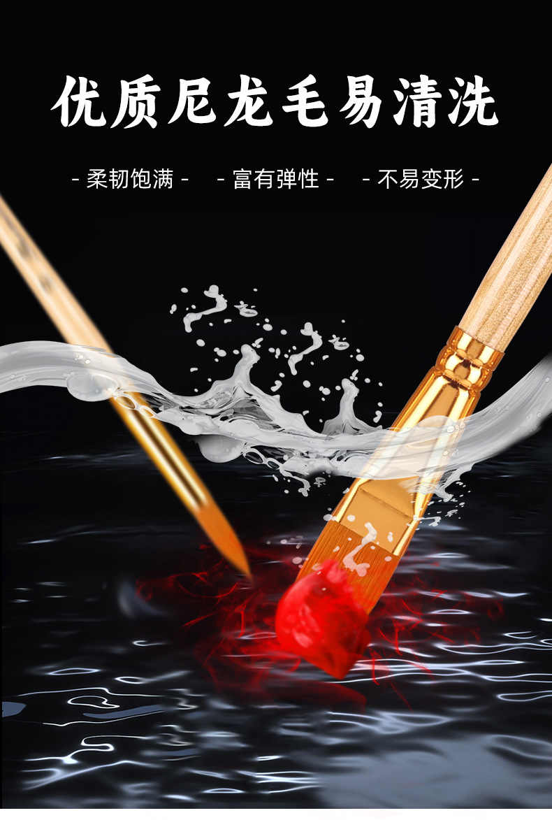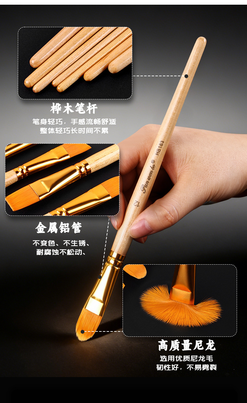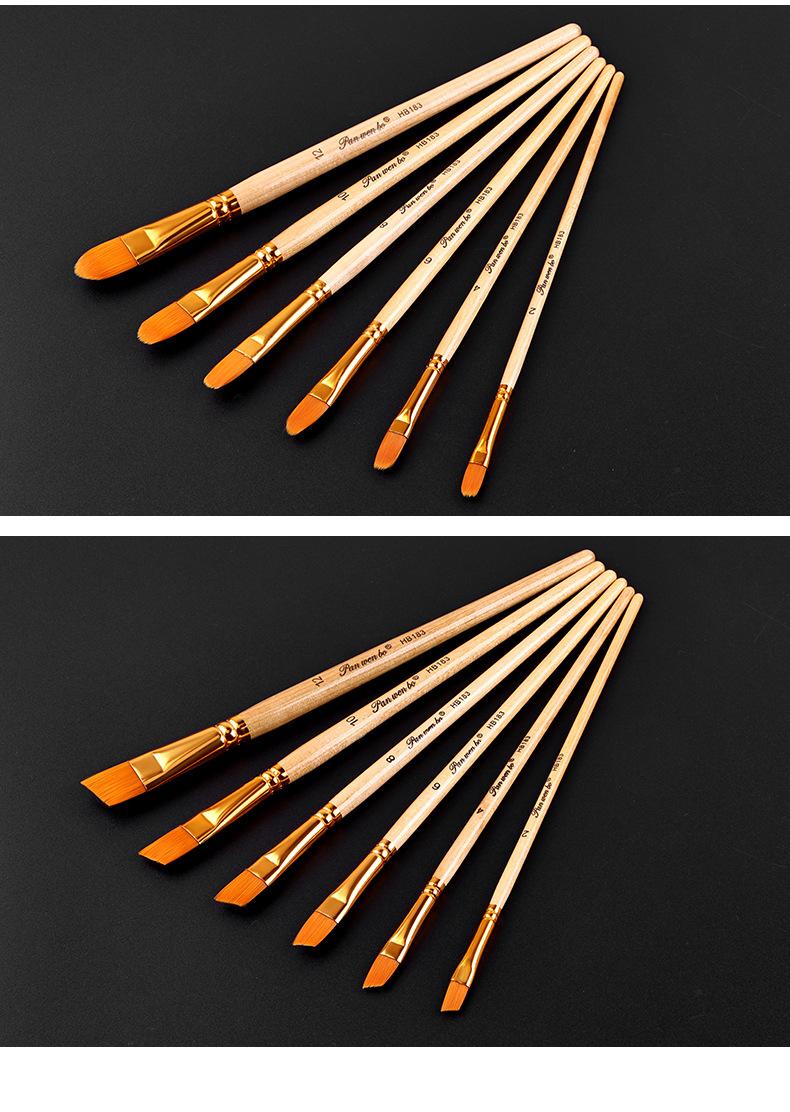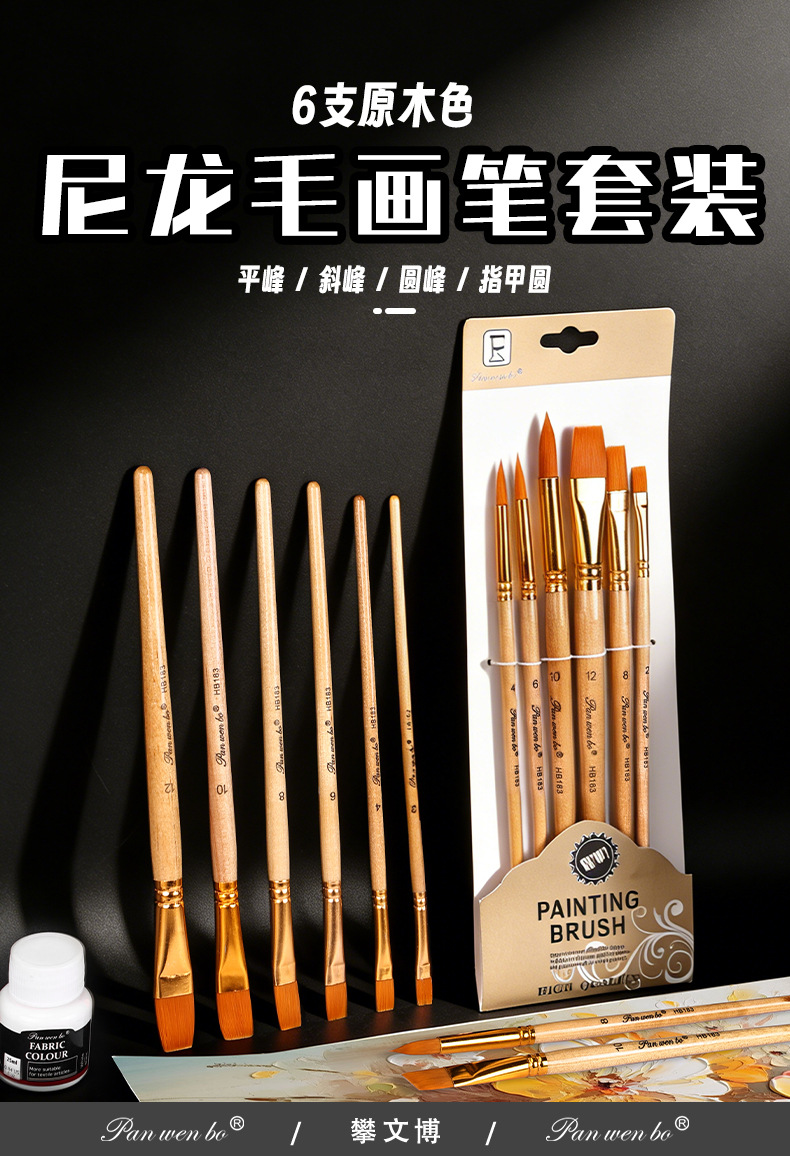 工厂直销尼龙颜料笔学生美术水粉笔套装跨境新款6支画笔木杆批发