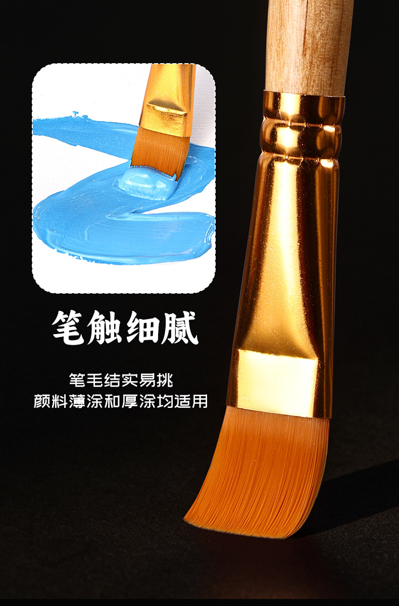 工厂全套油画笔套装12支长杆珠光蓝尼龙毛颜料丙烯笔单支勾线笔