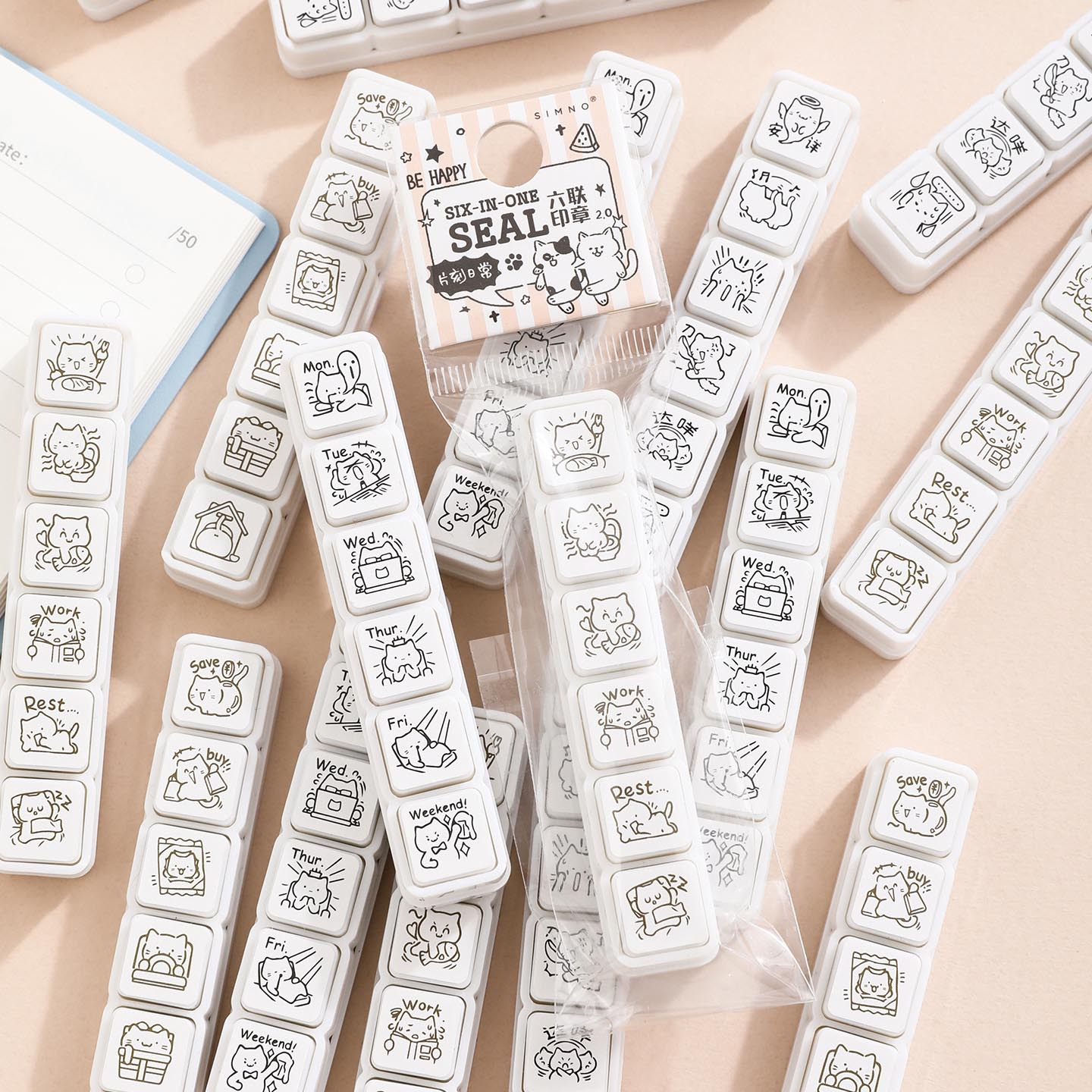 芯陌六联小猫印章2.0 创意简约装饰手帐素材基础印画可爱小猫印章