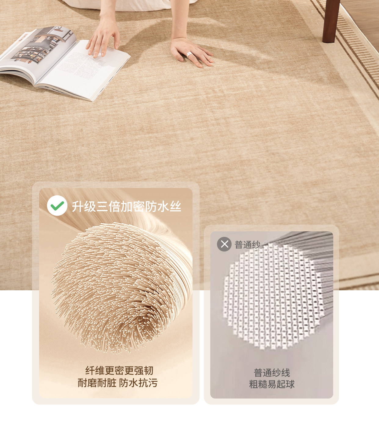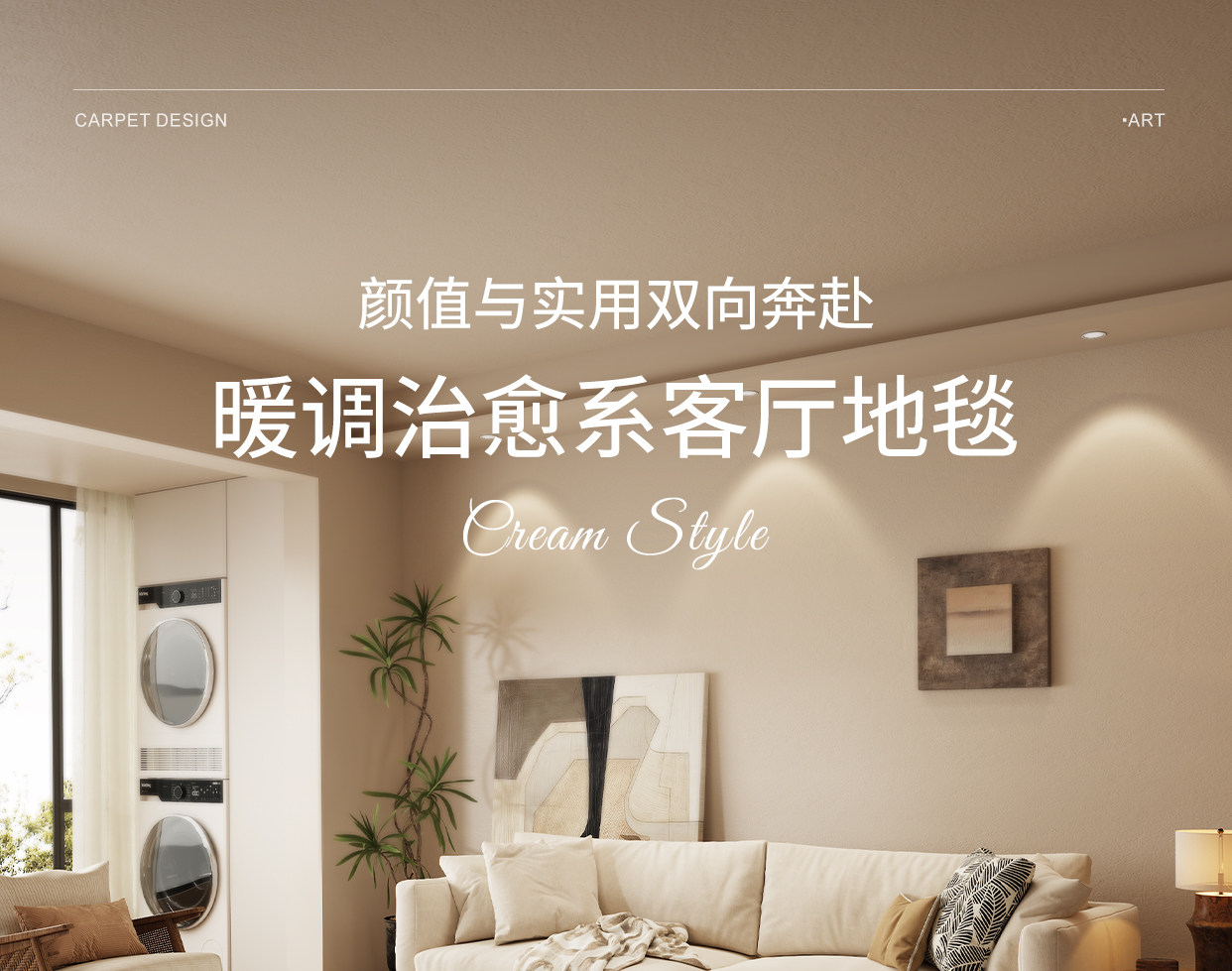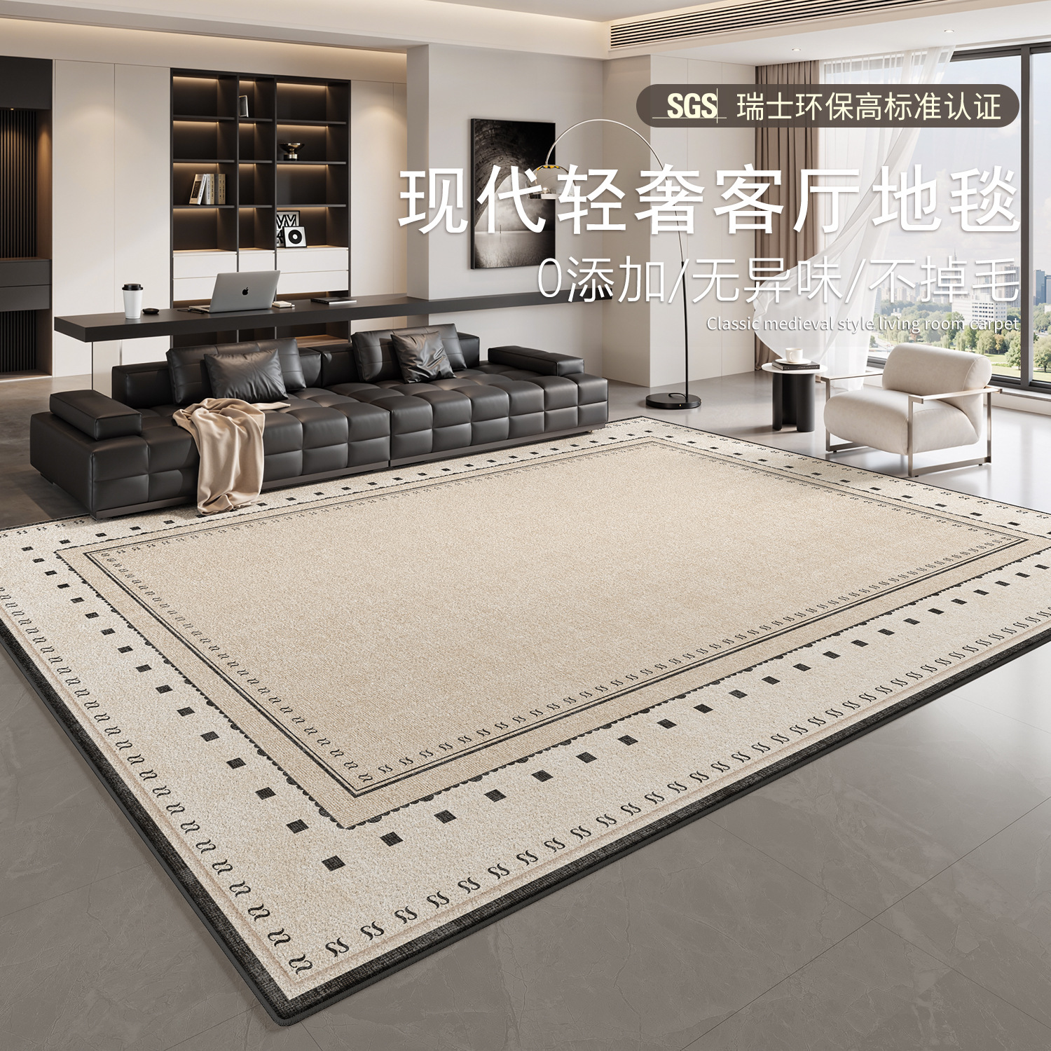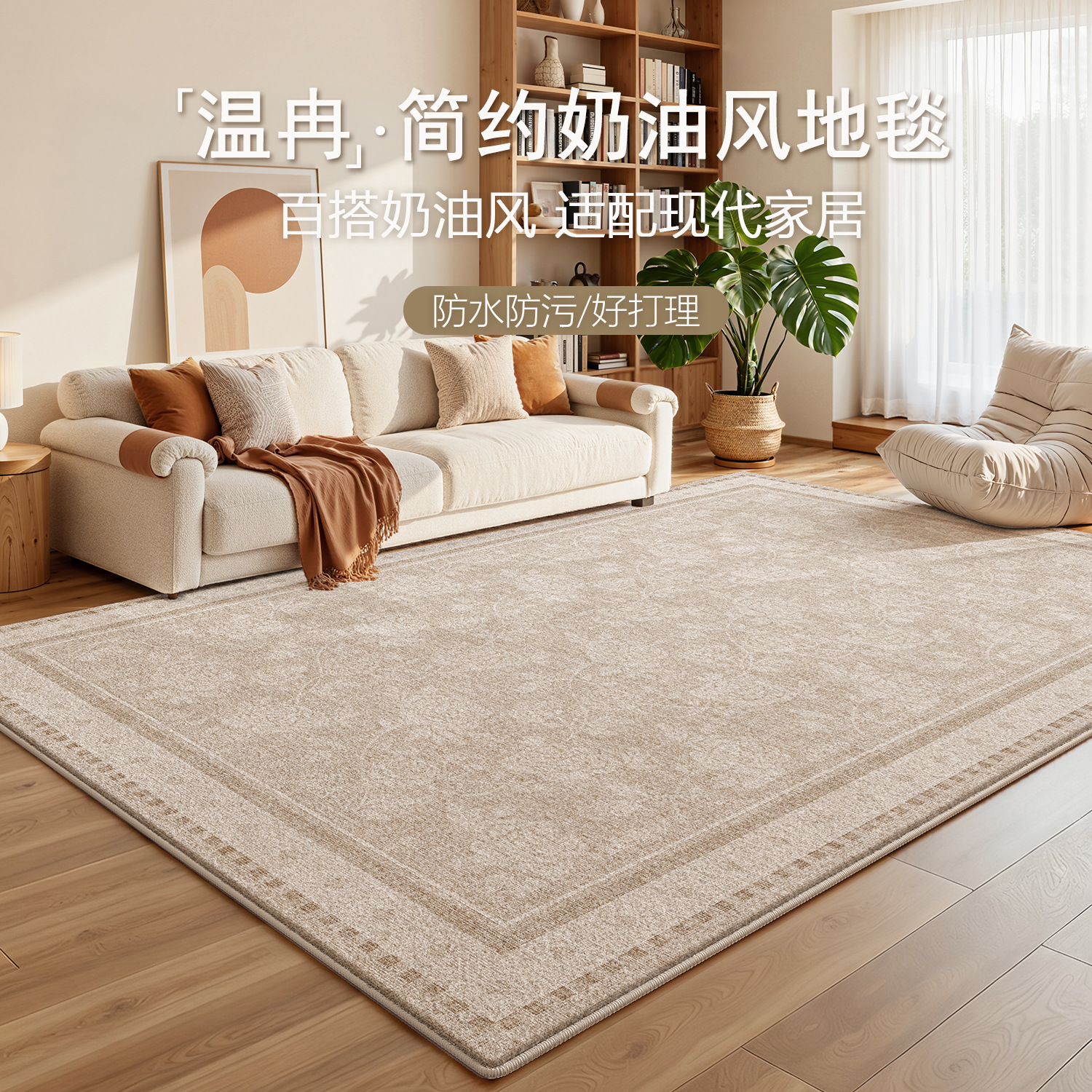 奶油风地毯客厅轻奢高级感沙发地垫防水防污免打理房间卧室床边毯