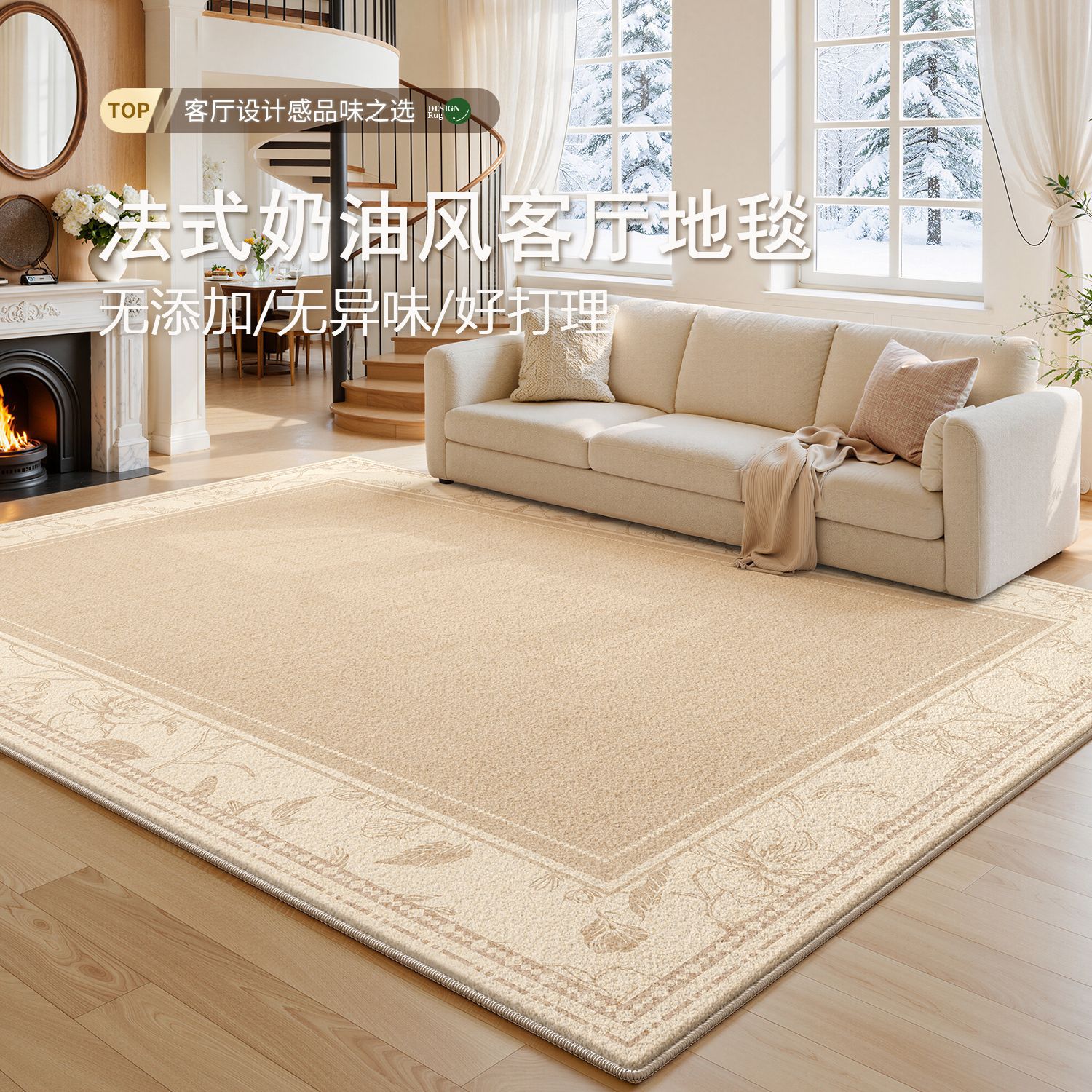法式中古地毯客厅轻奢防水防污免打理新款奶油风地毯卧室床边毯