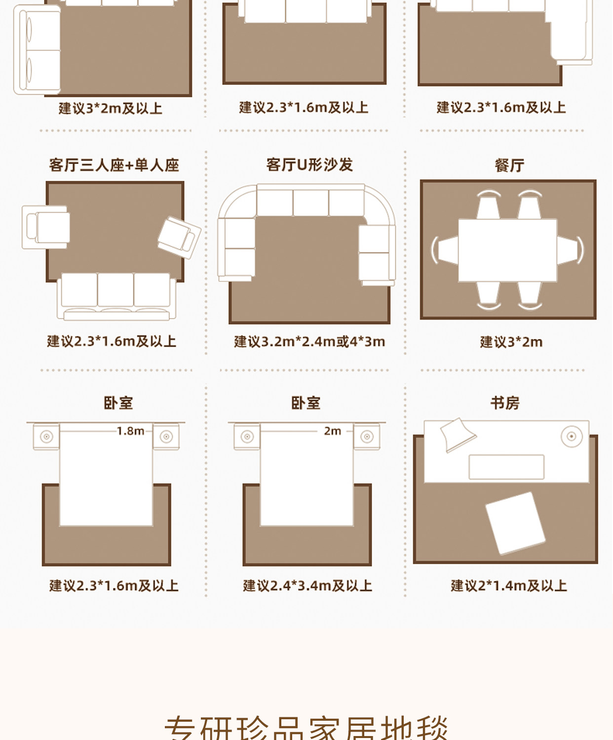 尺寸 140x200cm,160x230cm,160x300cm,200x250cm,200x300cm,200x340cm,240x360cm,240x400cm,300x400cm,60x160cm,120x160cm,定制其他尺寸联系客服