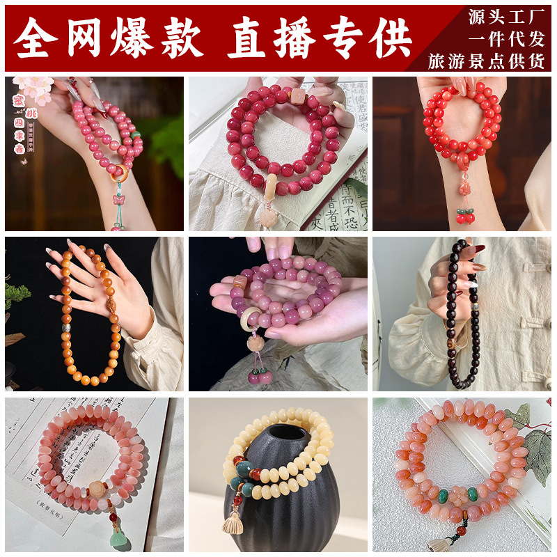 Douyin 人気のピンク菩提ブレスレット男性と女性のためのダブルサークルハンドヘルド黒梅ソース仏ビーズ数珠ブレスレット卸売