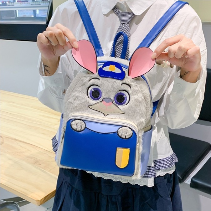 可爱卡通兔子毛绒定型款双肩包女韩系时尚狐狸背包大容量休闲包包
