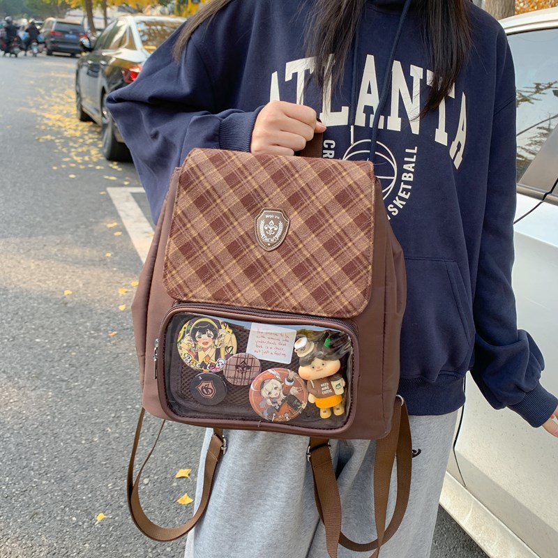 学院风菱格翻盖小方包韩系时尚新款复古双肩包大容量通勤出游背包