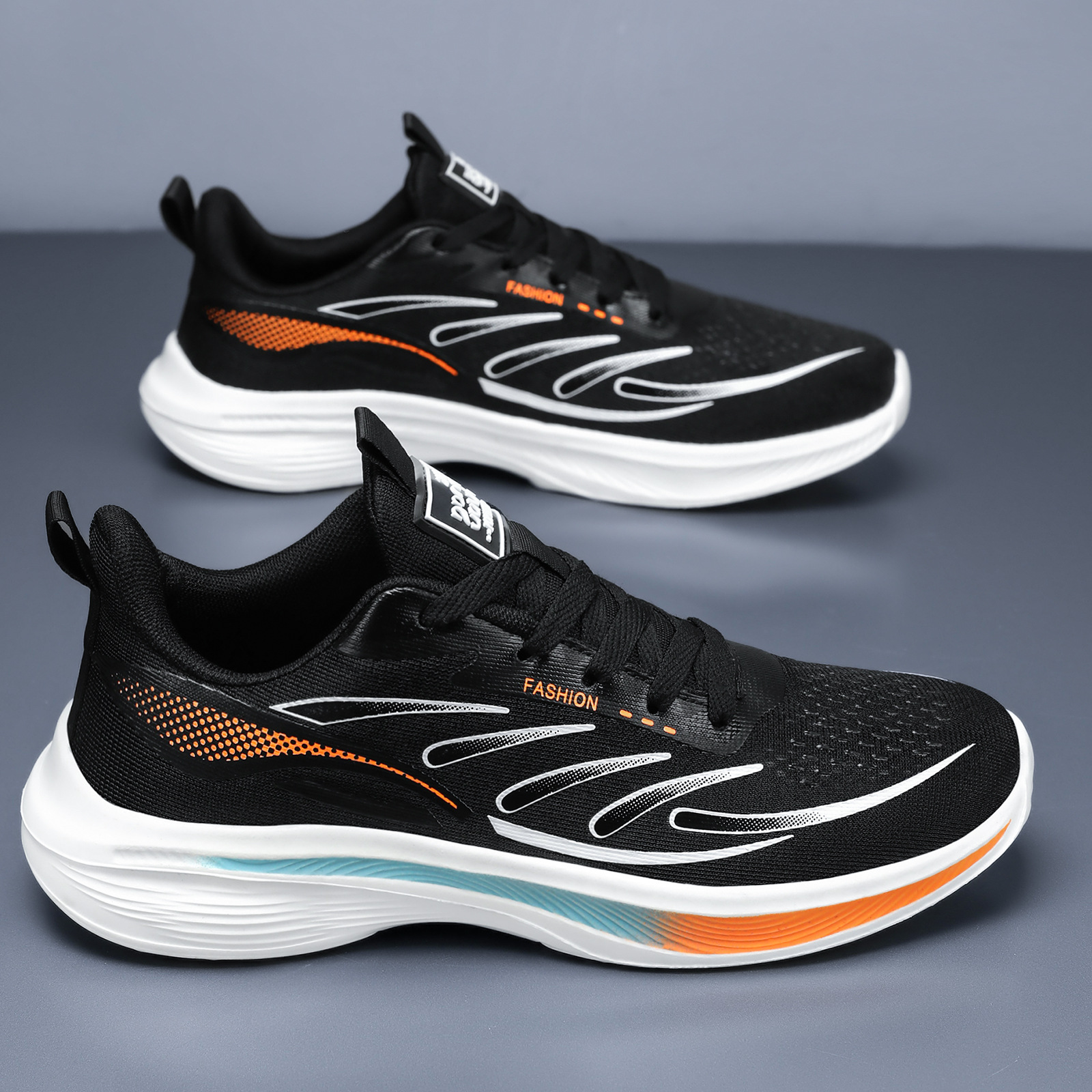男鞋外贸批发秋冬厚底回弹舒适跑步鞋子青少年系带拼色透气运动鞋