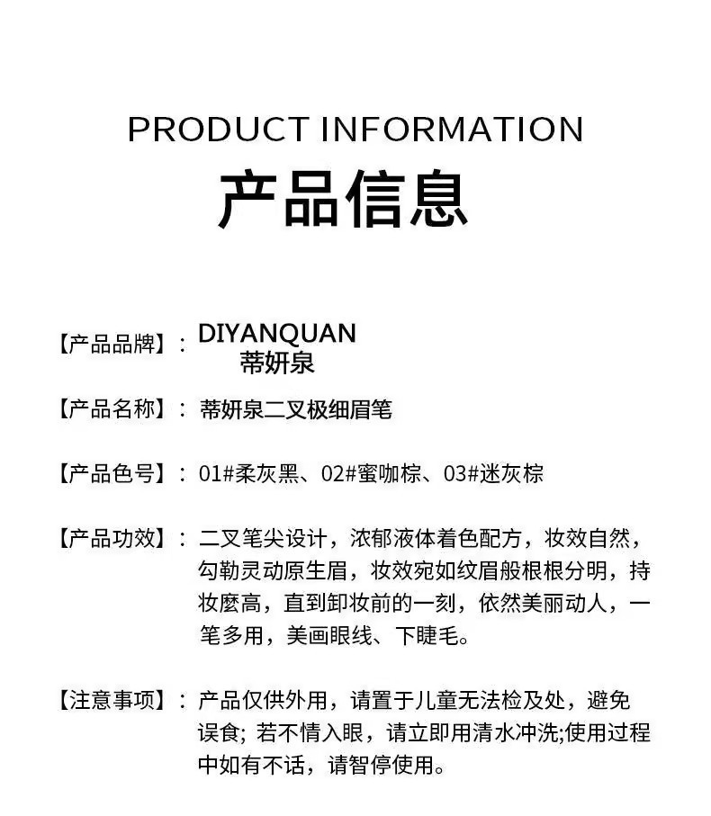 货号 DIYANQUAN蒂妍泉二叉眉笔 03 柔灰黑