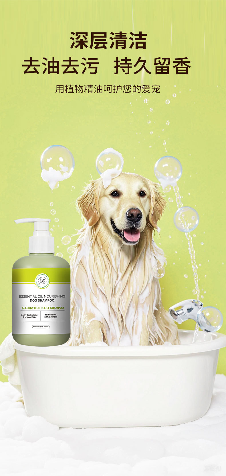 狗狗专用沐浴露含植物精油止痒除臭驱虫持久留香宠物香波专供跨境