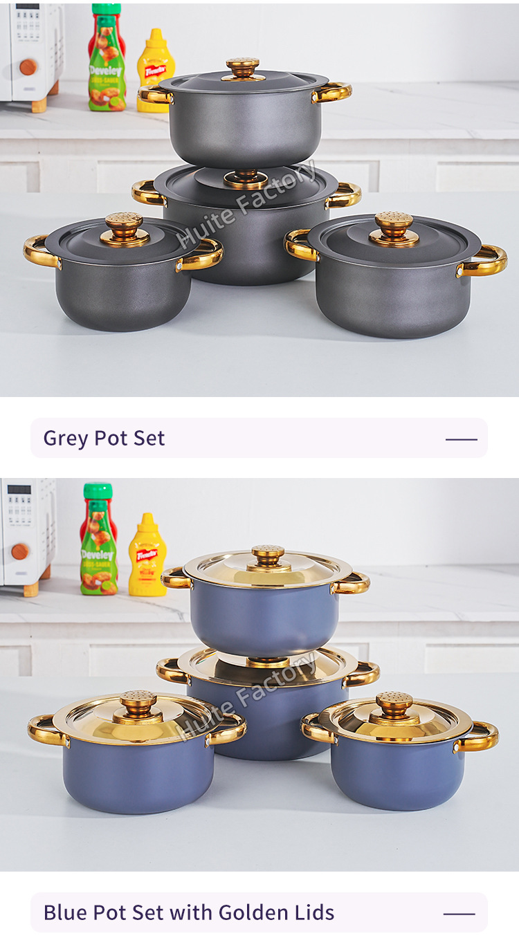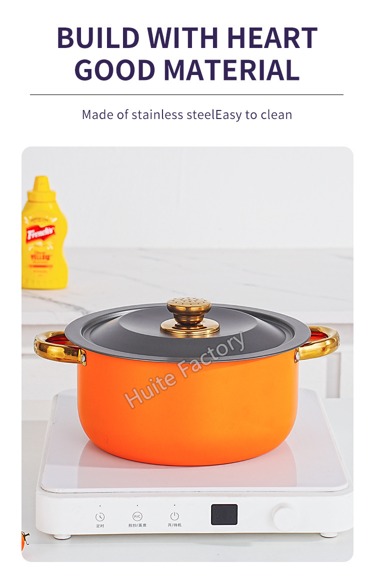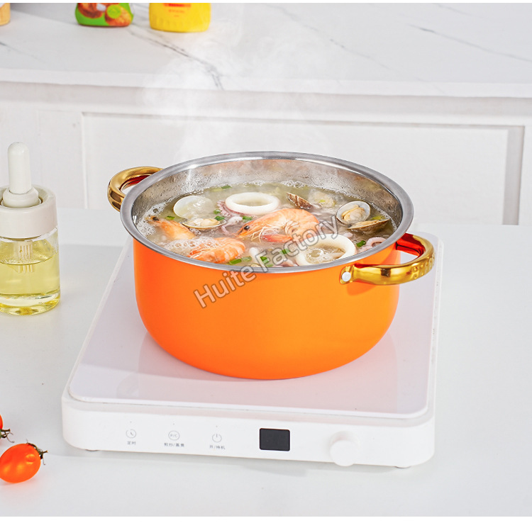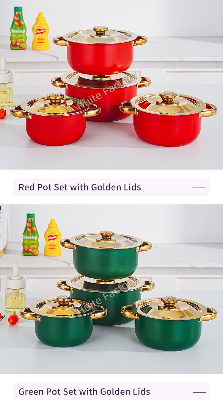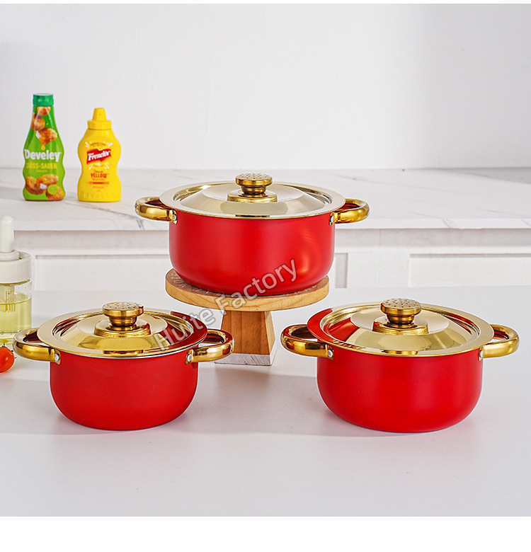 国境を越えた金色の両耳スープ鍋自慢カラー12セットステンレス鍋セット鍋セットpot set