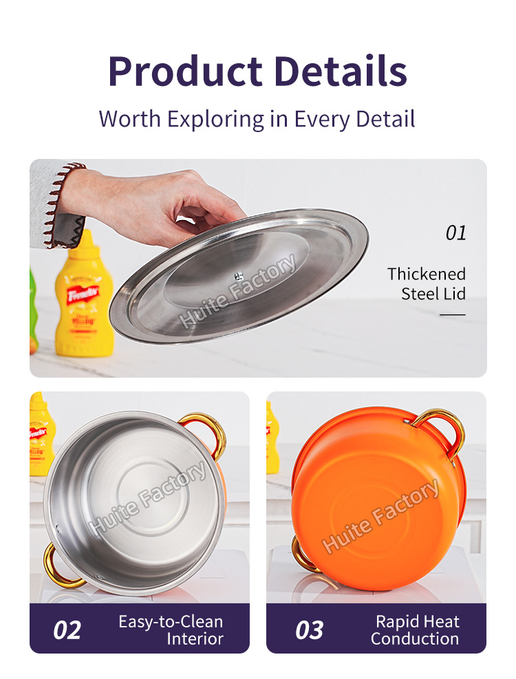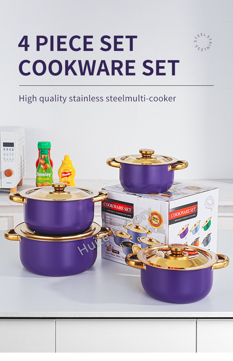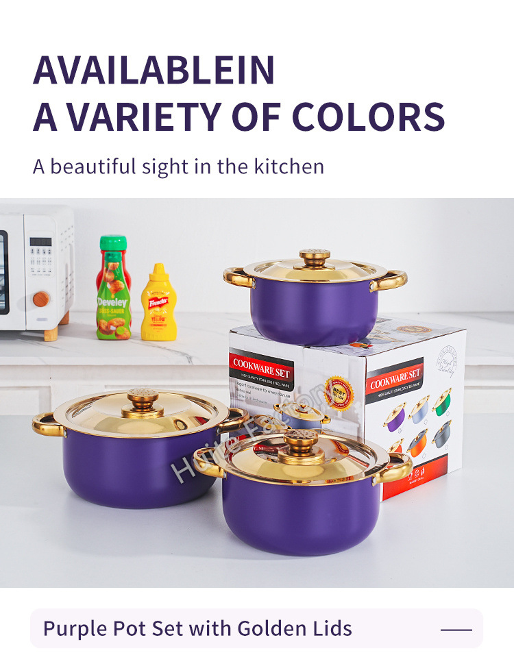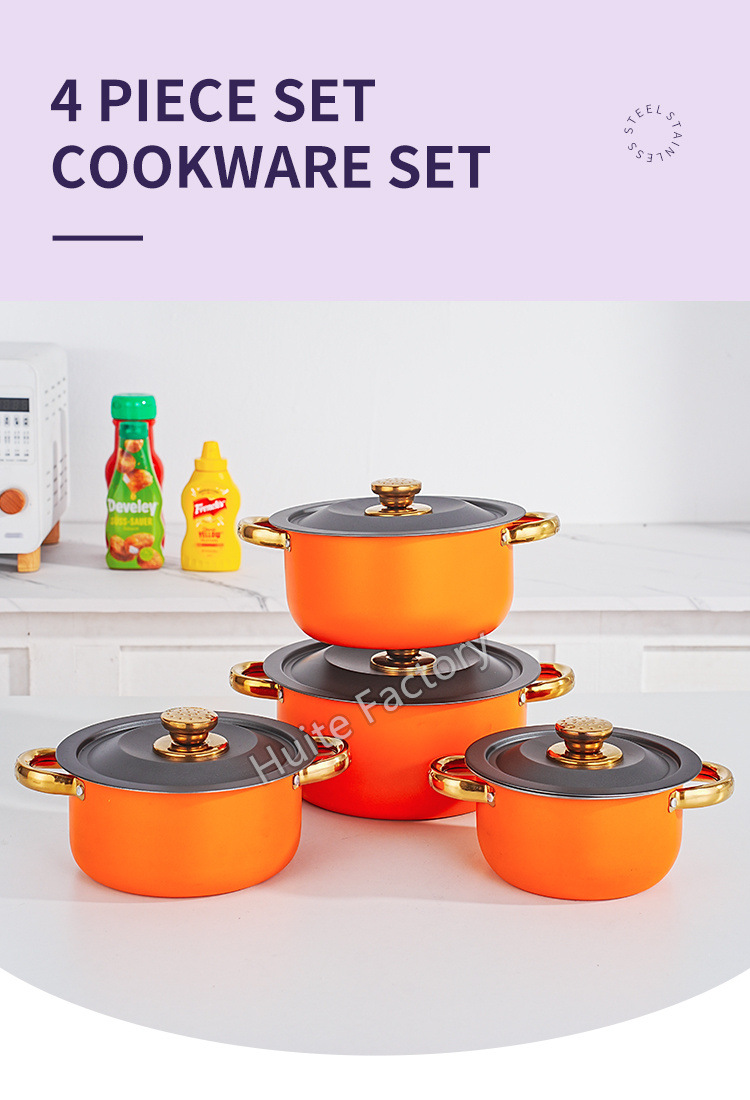 国境を越えた金色の両耳スープ鍋自慢カラー12セットステンレス鍋セット鍋セットpot set