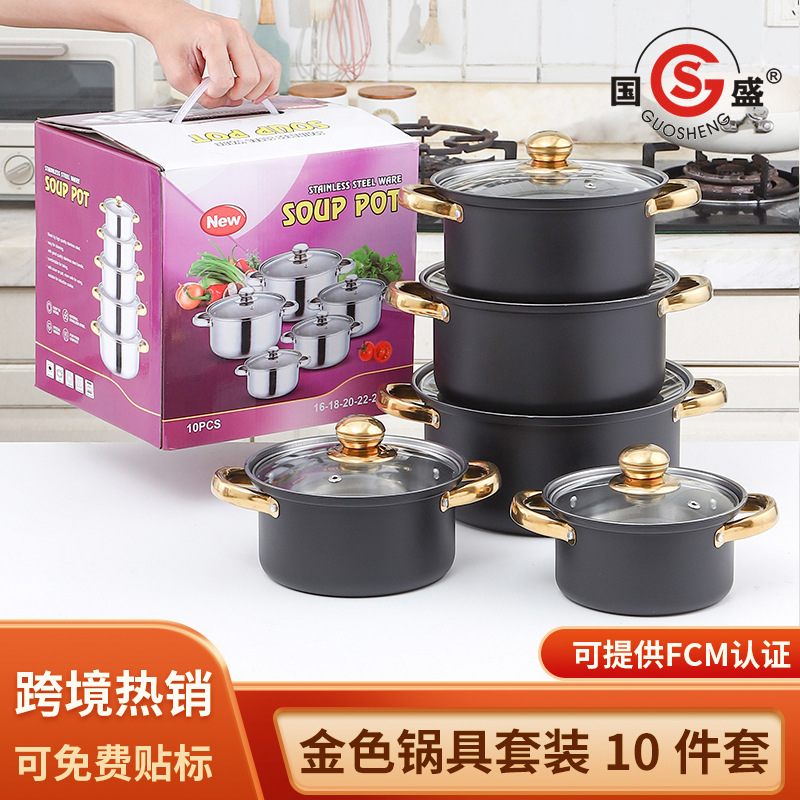 クロスボーダー輸出セット鍋ステンレス鍋セット金色両耳十点セットスープ鍋調理器具セット鍋セットセット