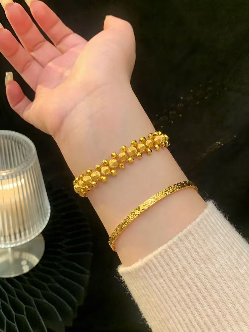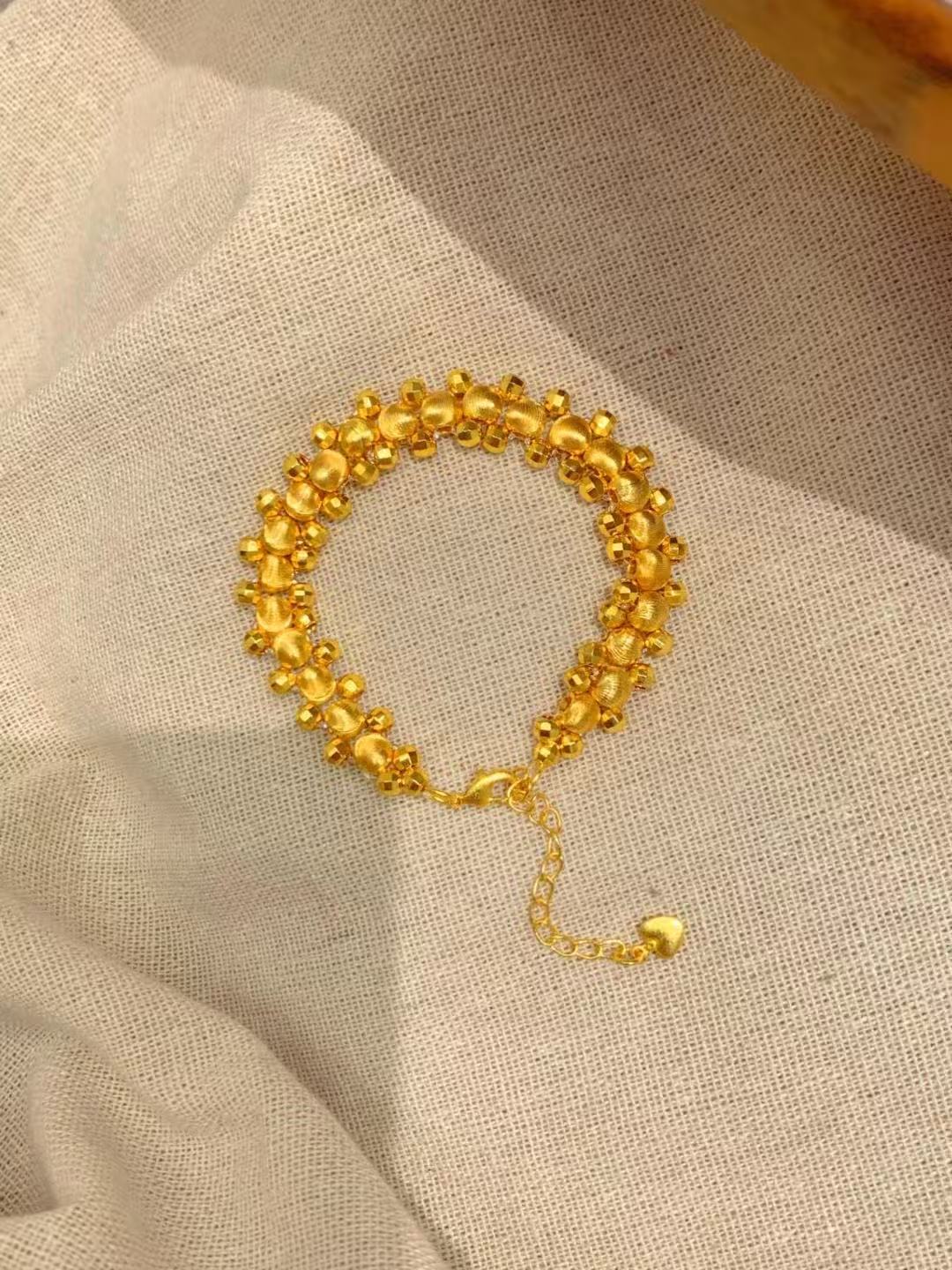 小红书爆款刺绣小金花手链古法金色拉丝泡泡钻花朵手链小众设计
