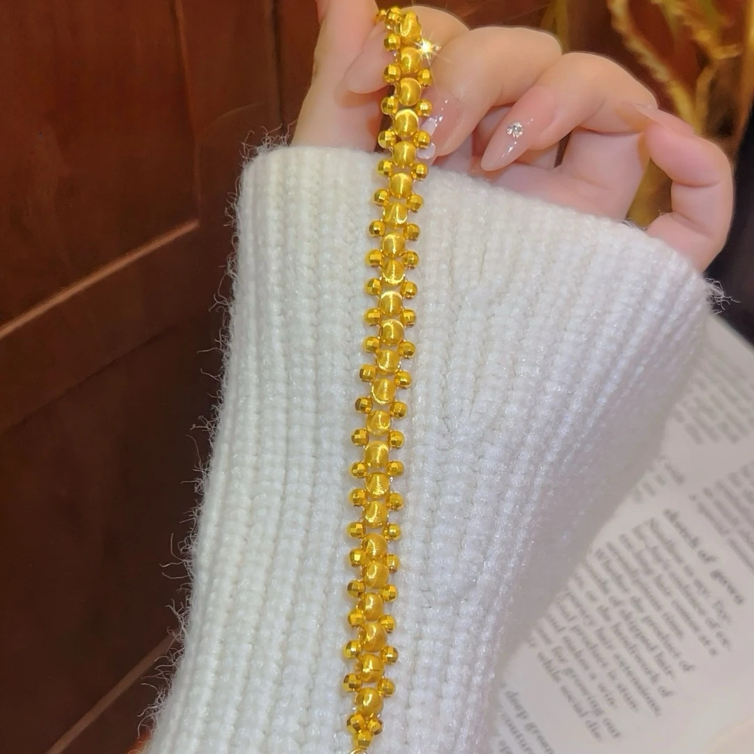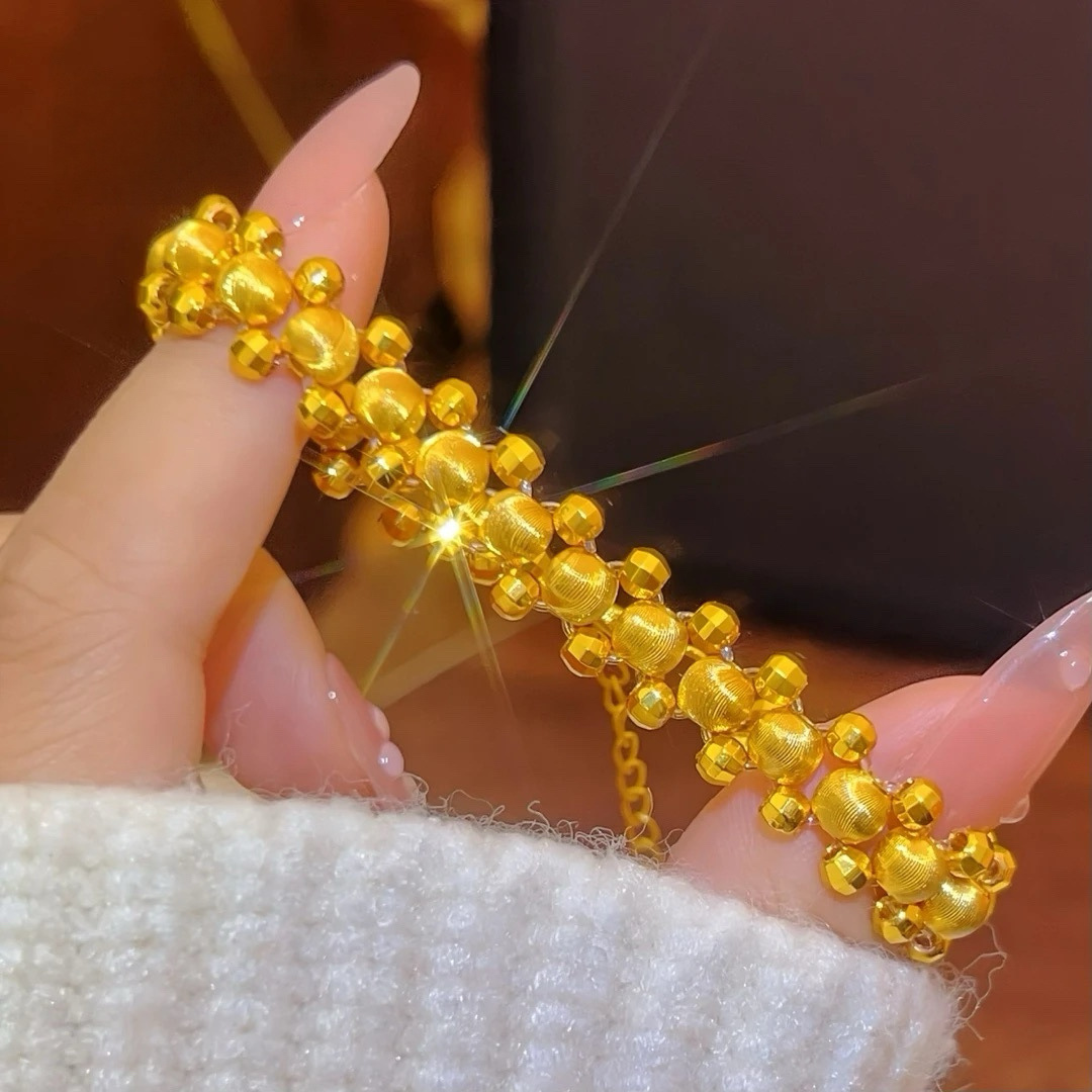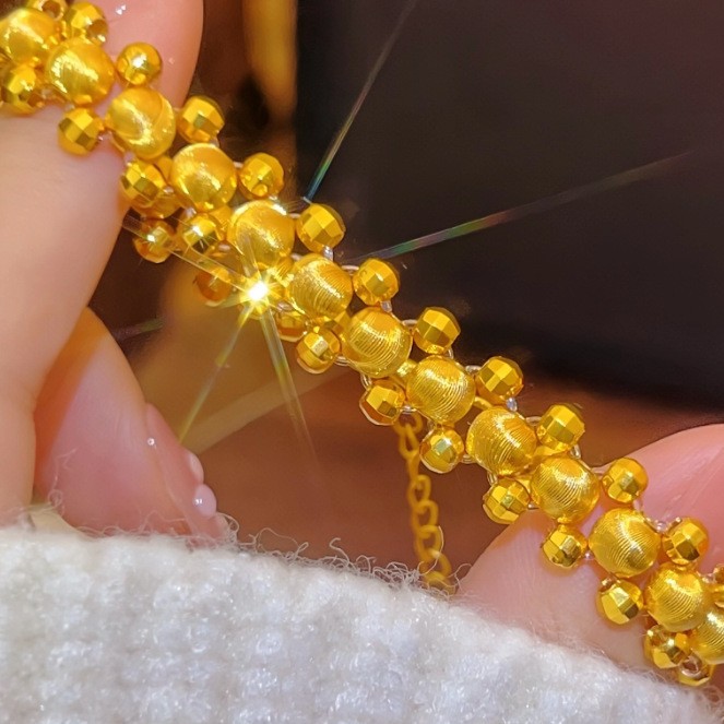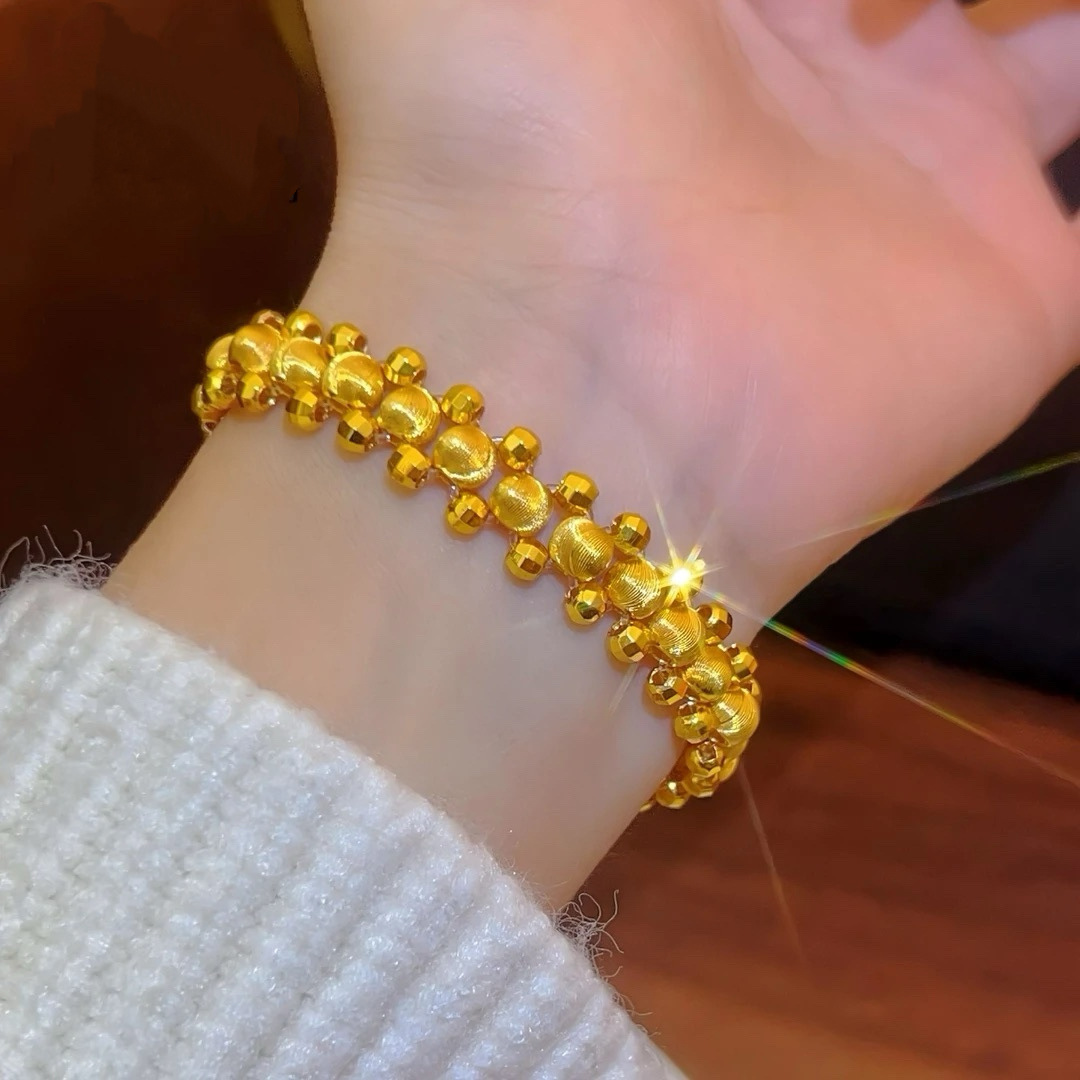 新しい金メッキソリッドラウンドビーズレーザーキャットアイブレスレット女性用金メッキライト高級レトロシンプルなフラッシュブレスレット卸売