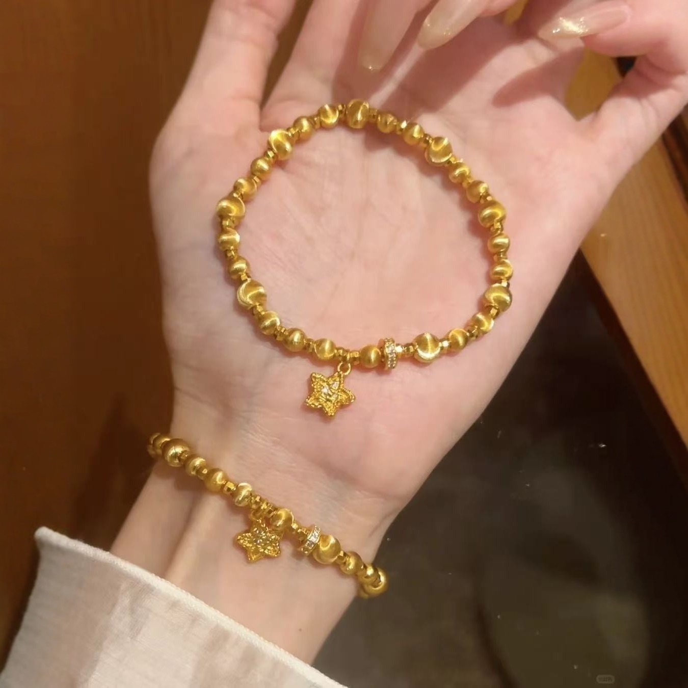 小红书爆款拉丝猫眼锤纹星星蹦迪珠手链跑环珠手串批发女送礼物