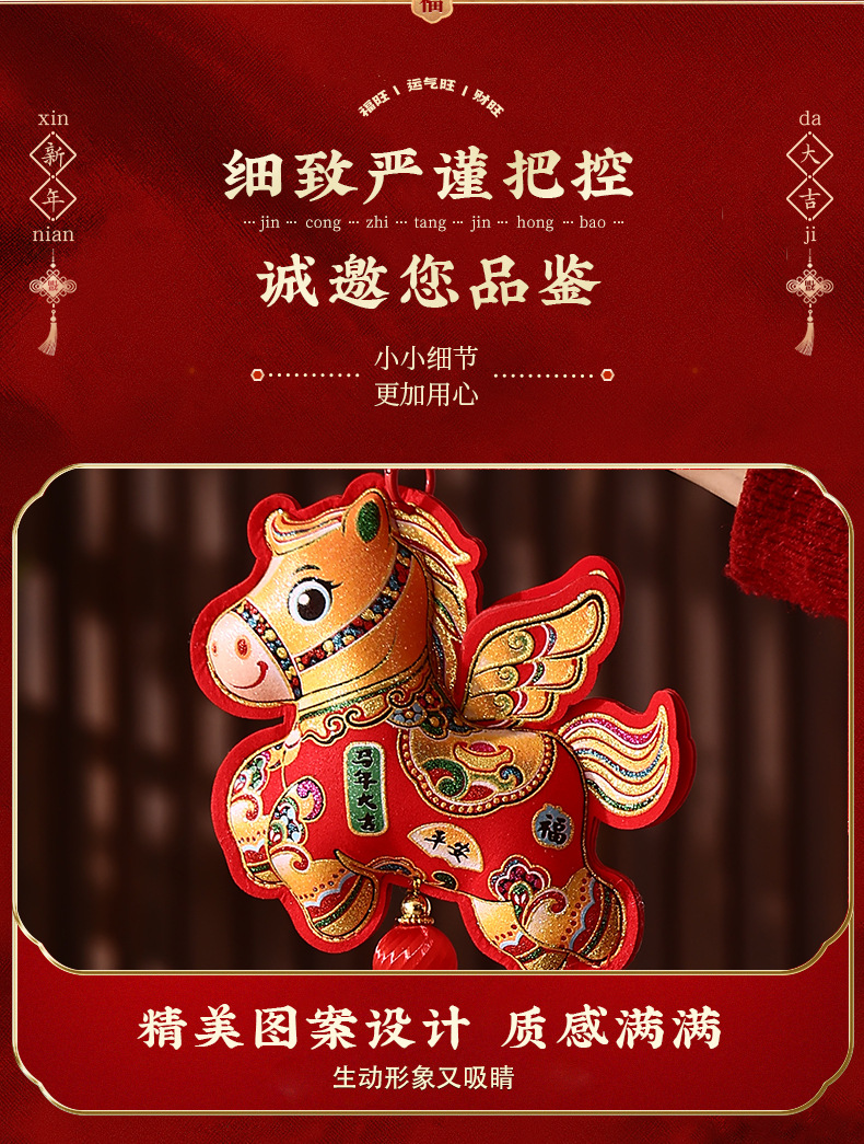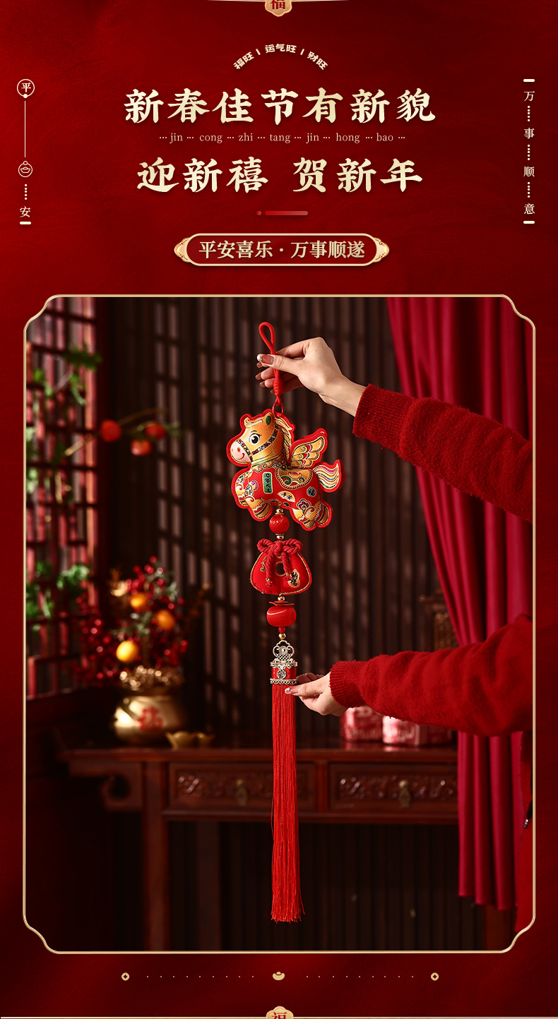 新年春节客厅玄关喜庆生肖福袋装饰2026马年过年挂饰创意布艺挂件