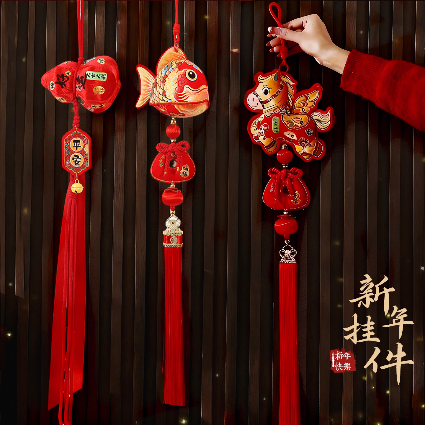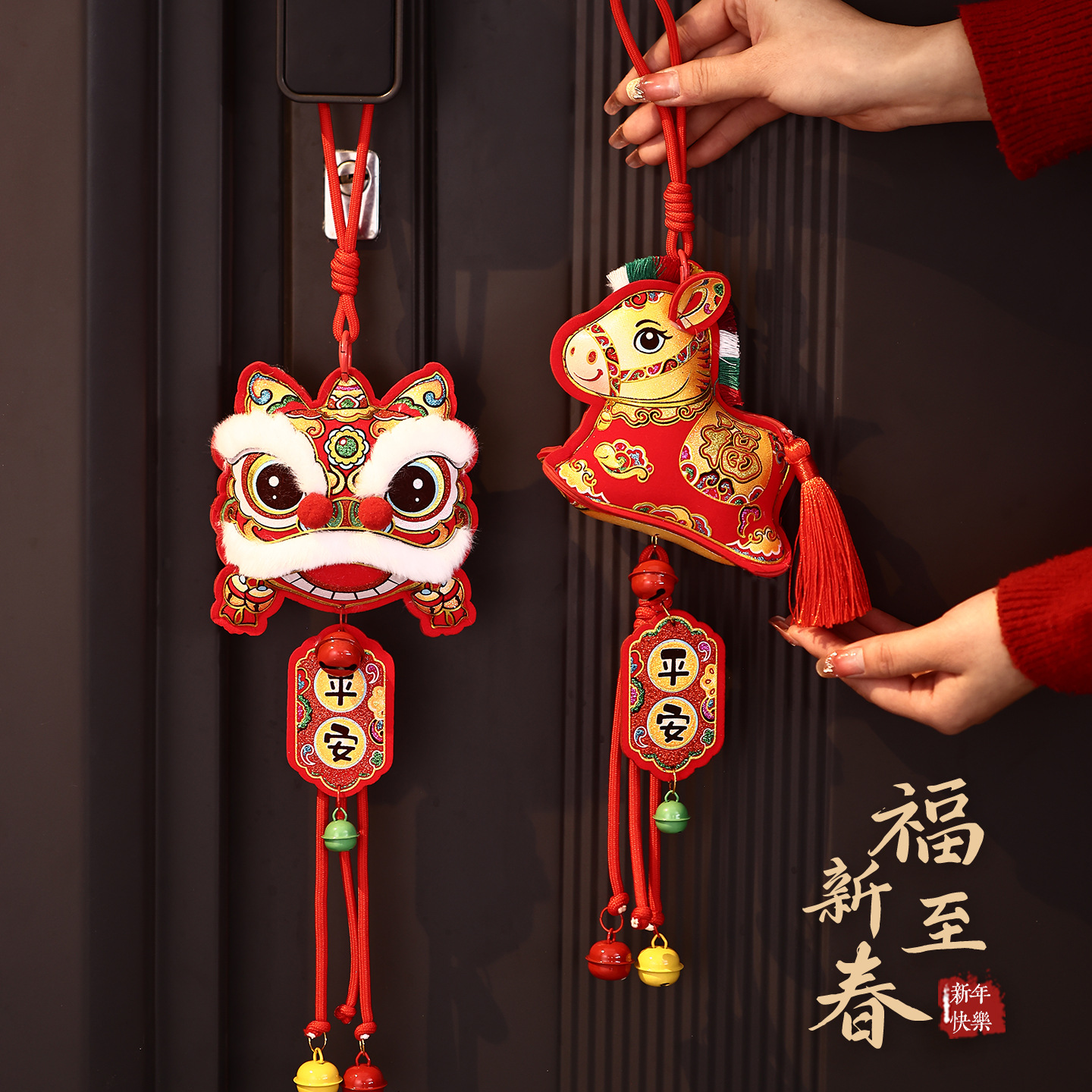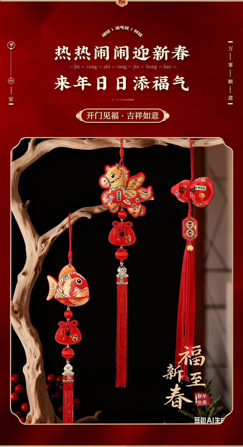 2026马年新春铃铛布艺挂件春节过年装饰新年福字醒狮毛绒挂饰批货