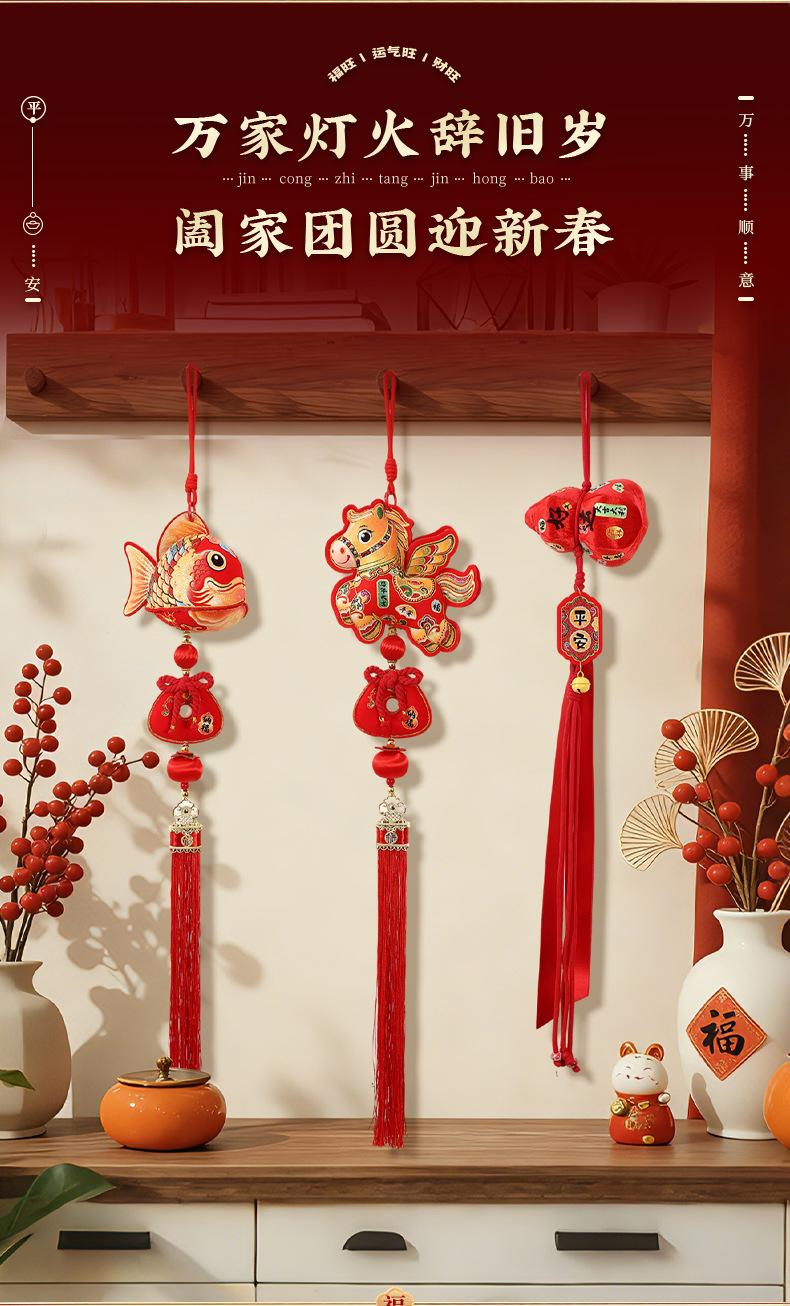 2026马年过年挂饰创意布艺挂件新年春节客厅玄关喜庆生肖福袋装饰