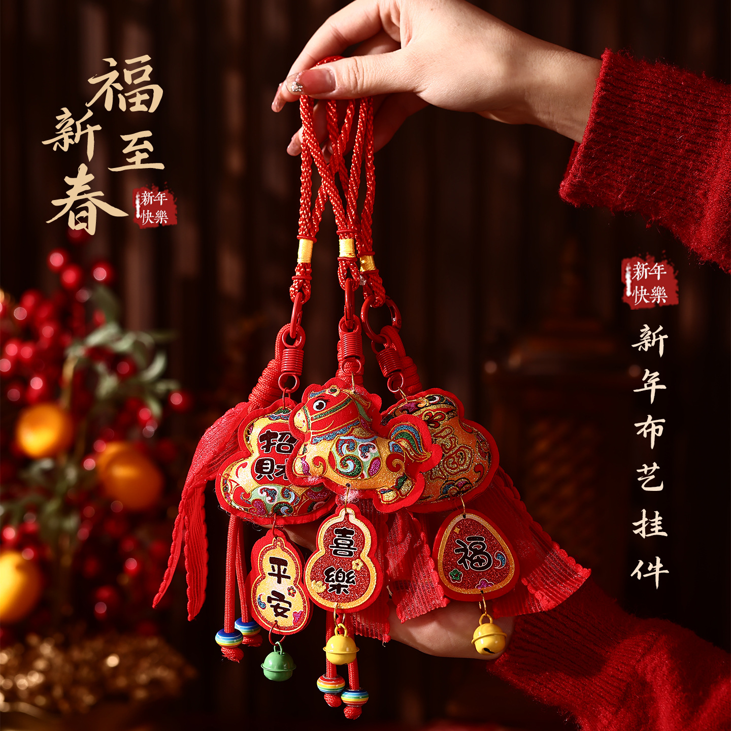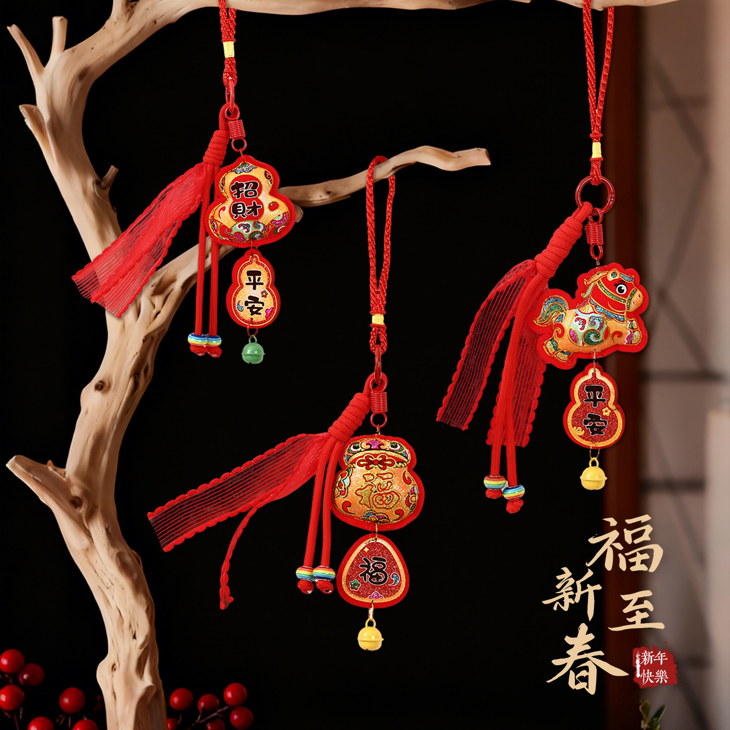 2026新款福字挂件春节马年过年装饰贺年新年葫芦福禄挂饰铃铛门挂
