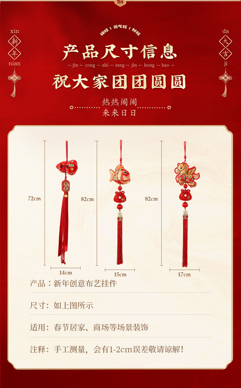颜色 葫芦长流苏-挂件,醒狮-6头鞭炮串,醒狮-12头鞭炮串,福鱼-铃铛挂,福鱼-铃铛挂(2个装),福马小铃铛-挂件,葫芦小铃铛-挂件,福袋小铃铛-挂件,绿色国风葫芦-挂件