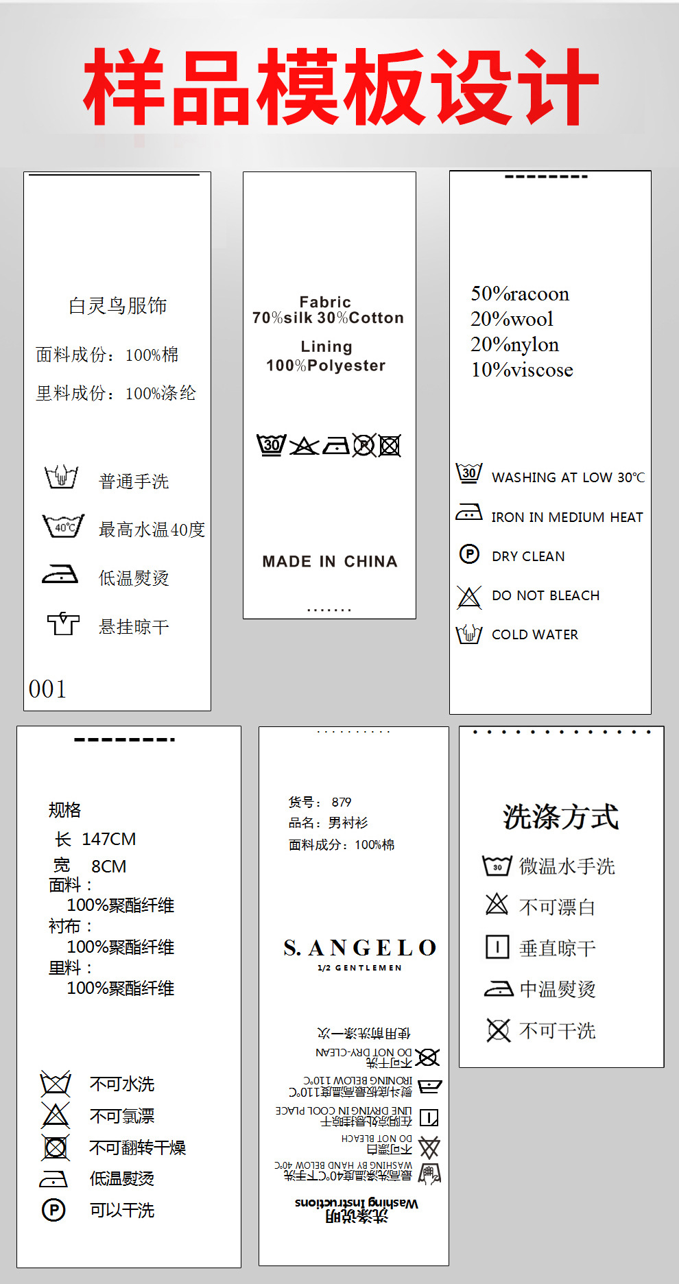 空白服装水洗唛水洗标洗水麦缎带布标洗麦成份标签布成分洗涤标