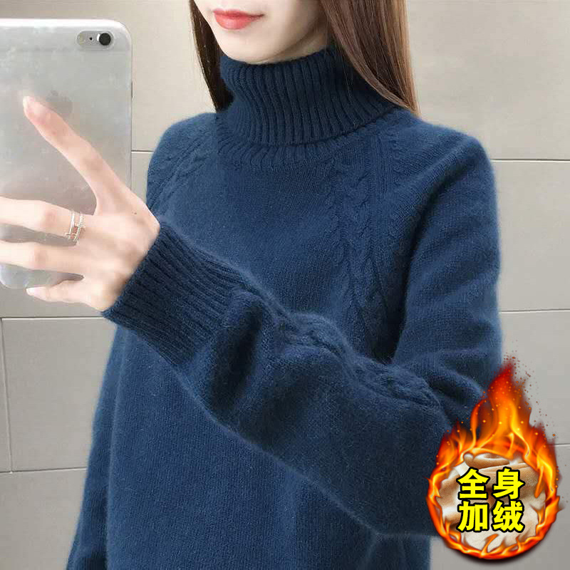 怠惰な風の高襟の女性のセーターはゆったりしていて、2023年の新型秋冬の底のシャツを着て上着を厚くします。