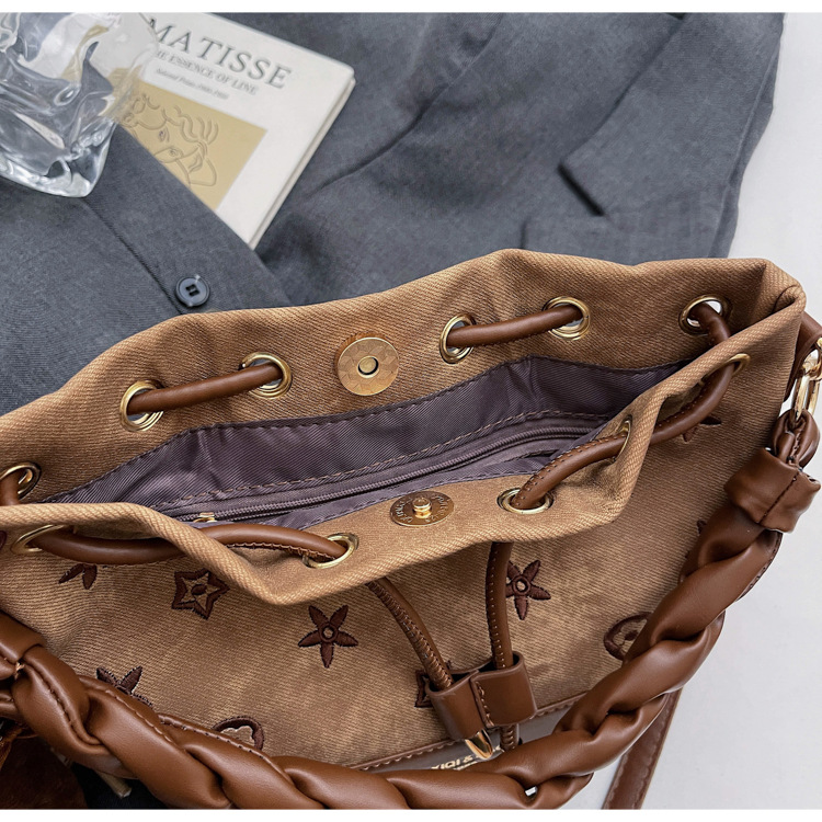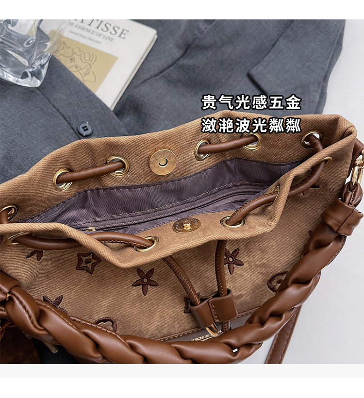 高级感大容量印花水桶特色麻花肩带通勤单肩包洋气精致个性手提包