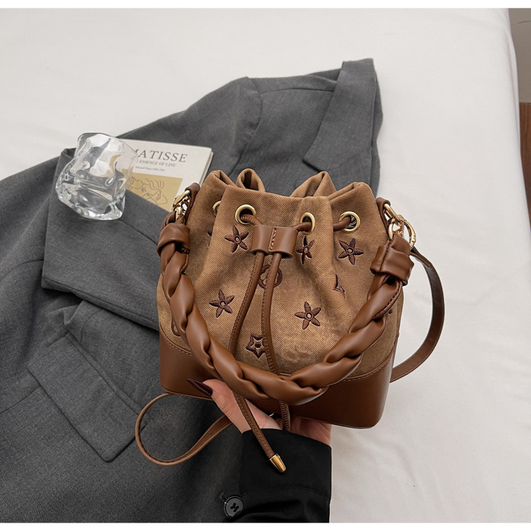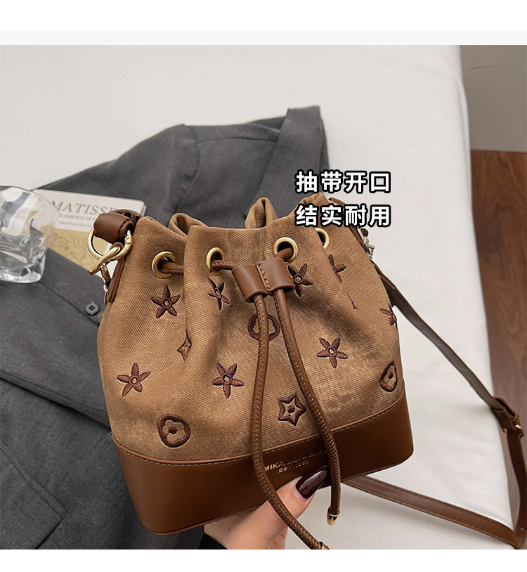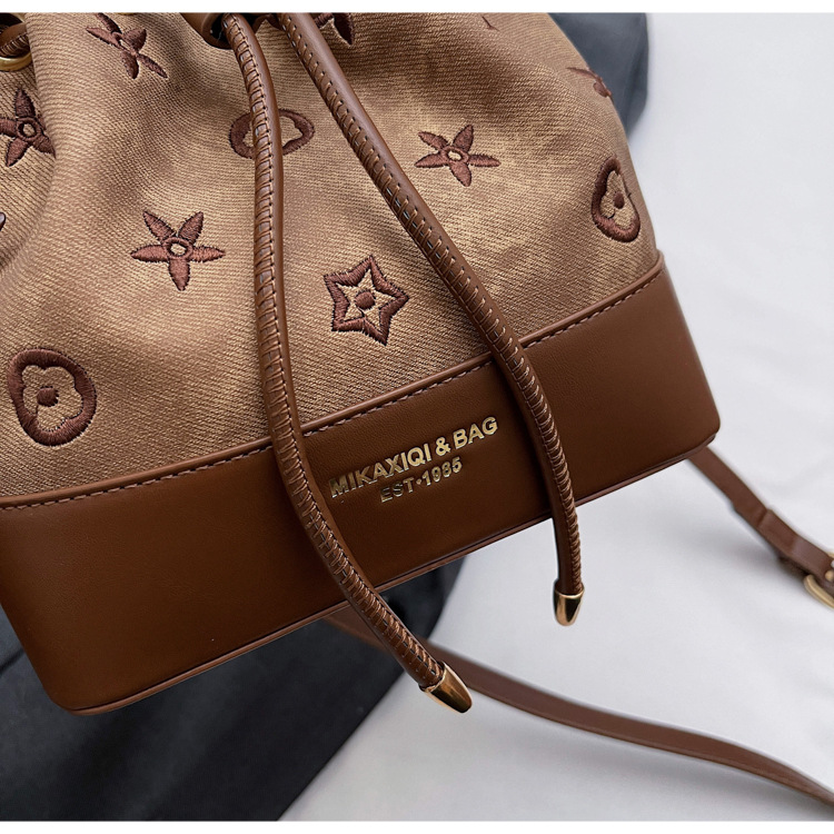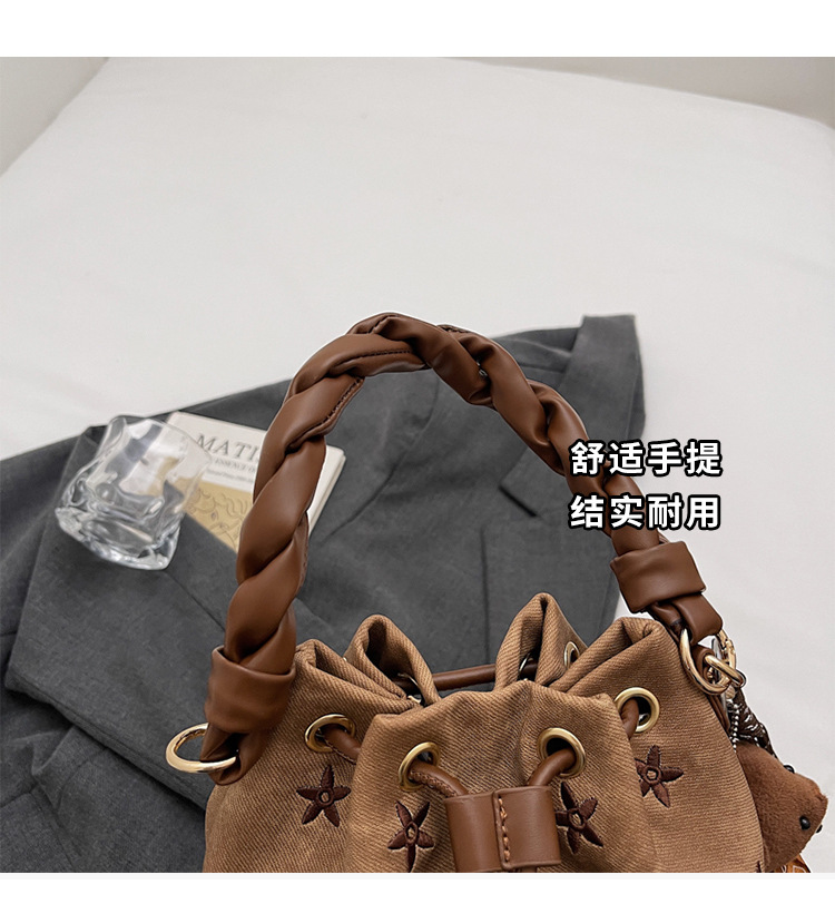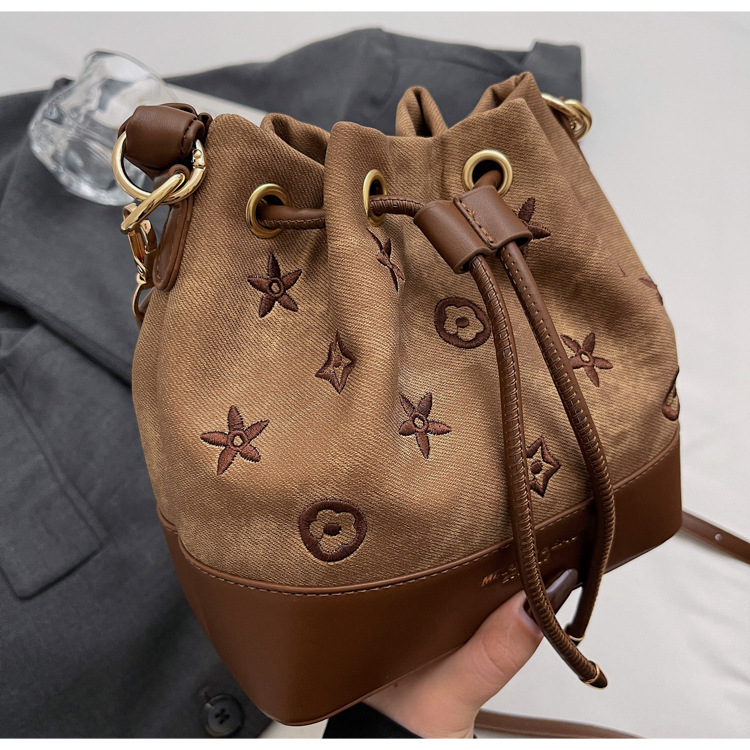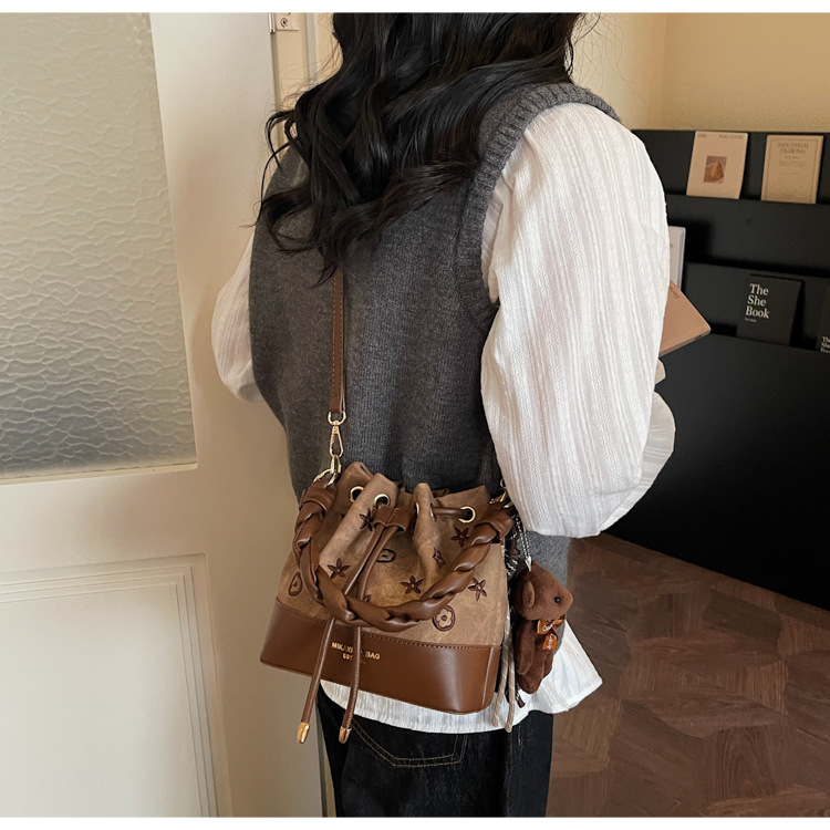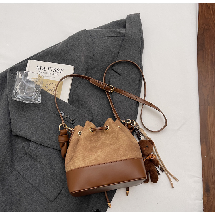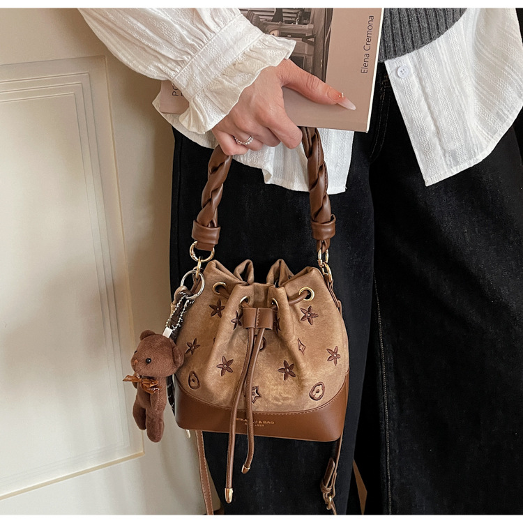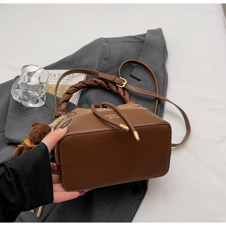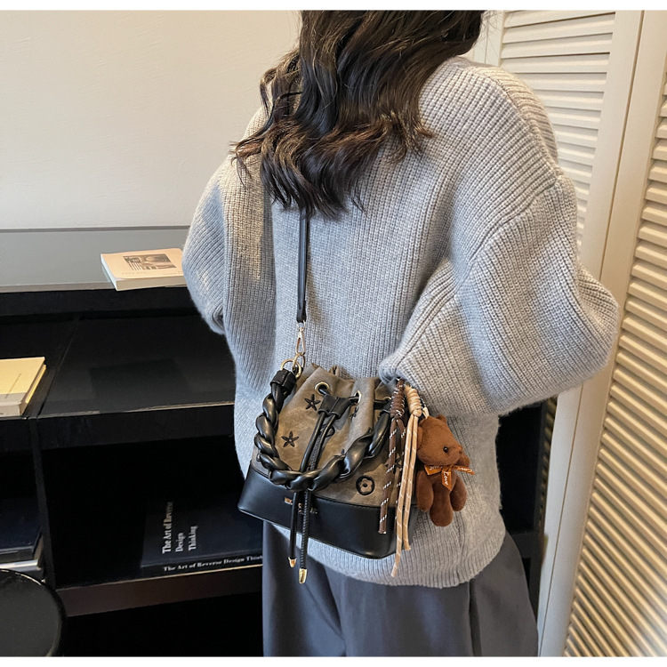 包包女秋冬韩国小众高颜值水桶包复古美拉德风手提包单肩斜挎包女