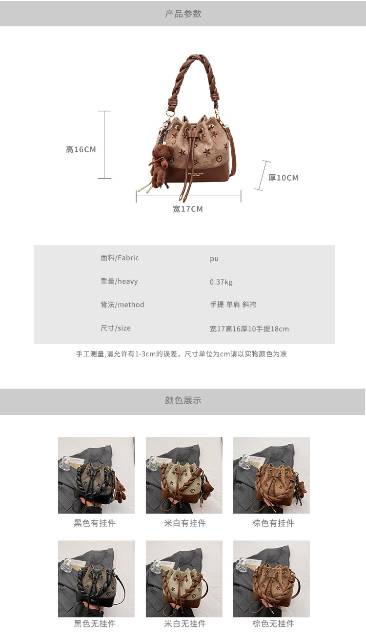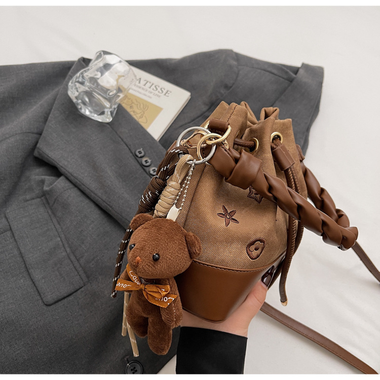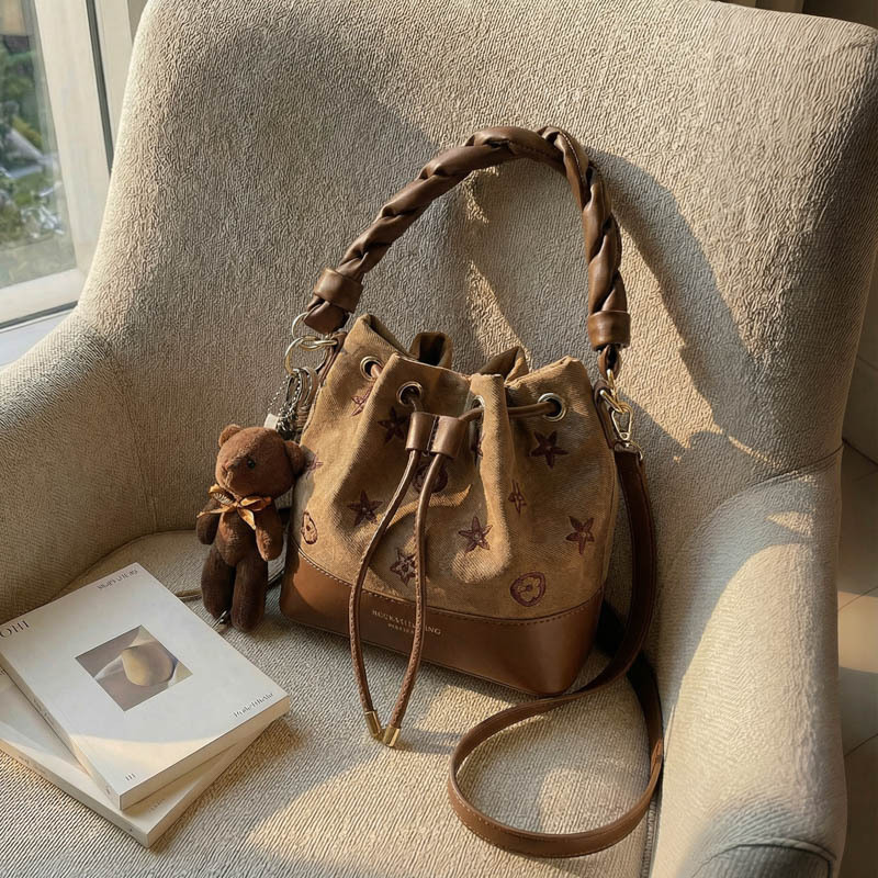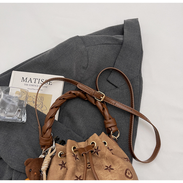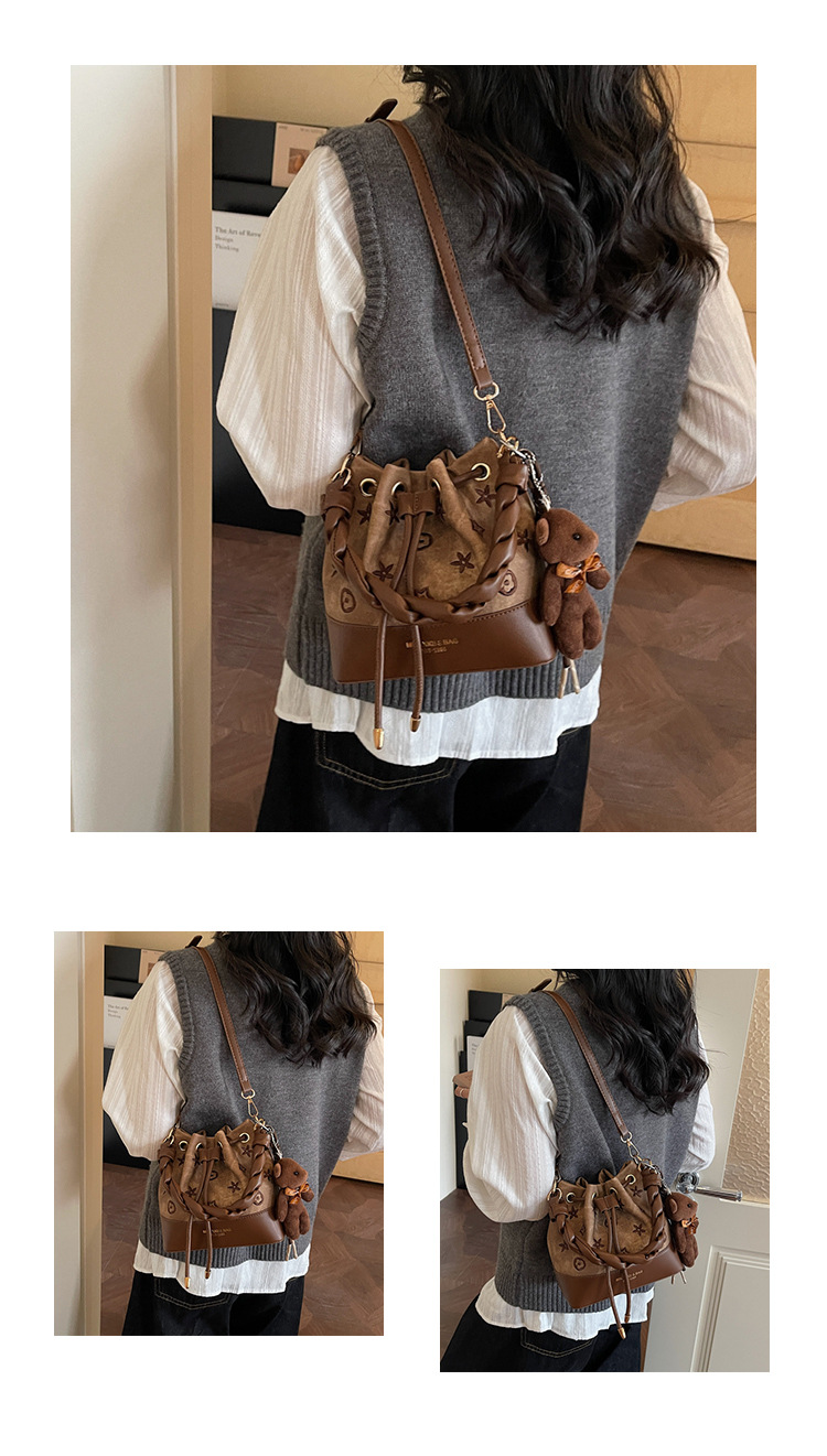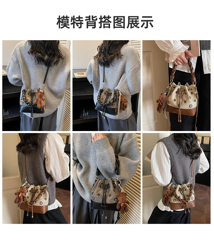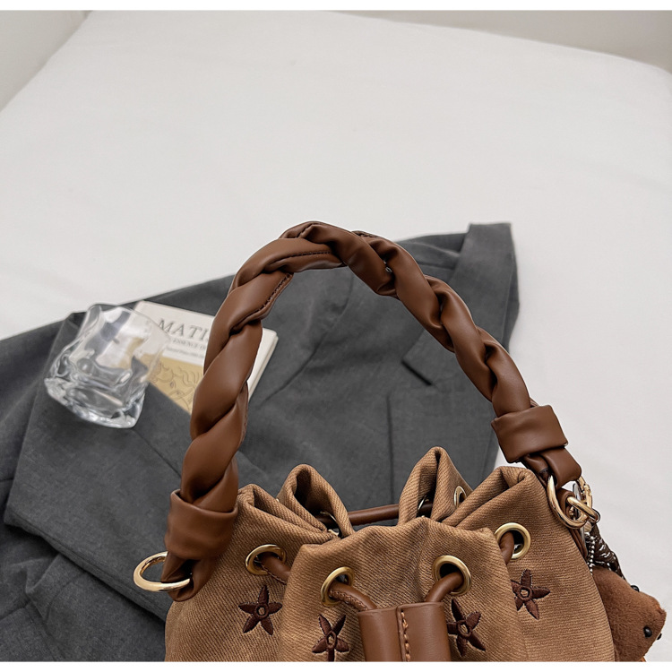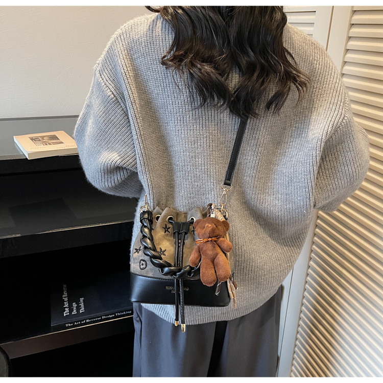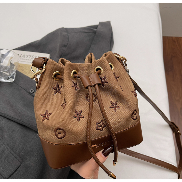 包包女秋冬韩国小众高颜值水桶包复古美拉德风手提包单肩斜挎包女