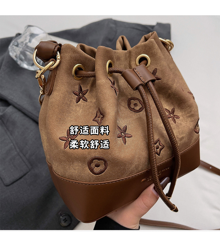 小众高颜值水桶包包复古美拉德新款手提福袋包轻奢百搭单肩斜挎包