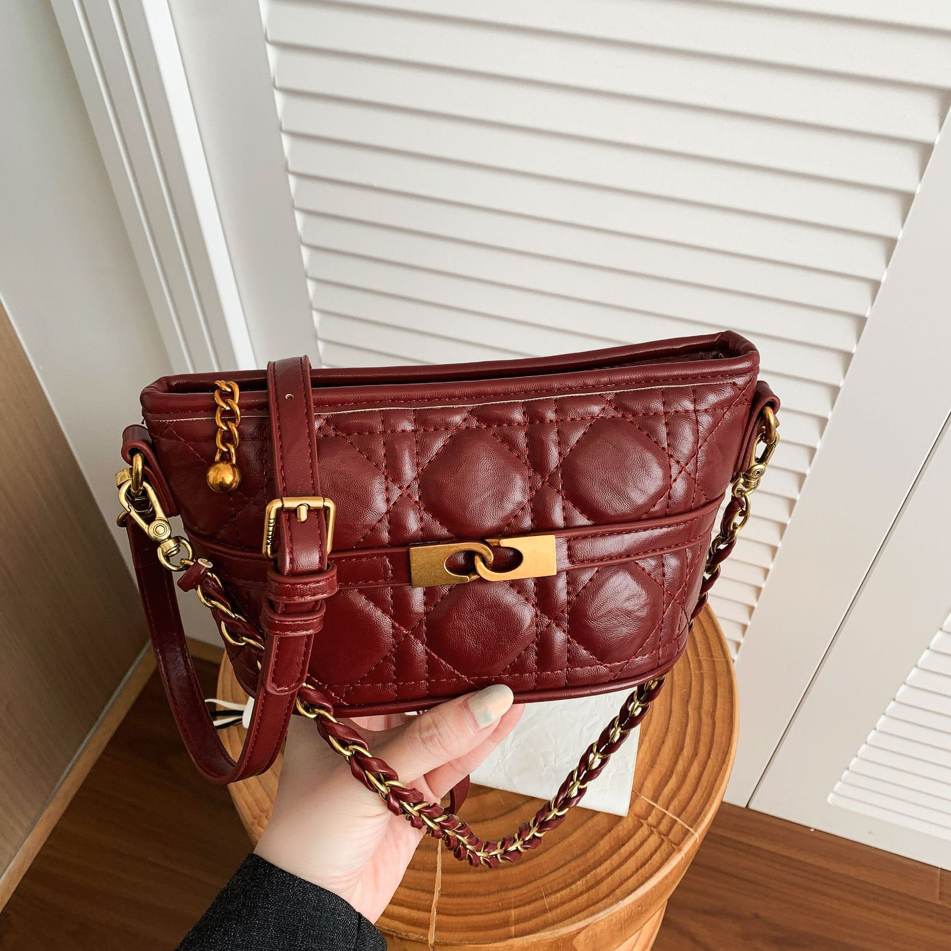 小香风百搭水桶包轻奢复古菱格斜挎包高级小众洋气链条单肩腋下包
