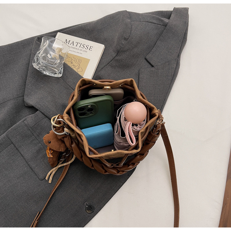 小众设计女士单肩斜挎包2026冬季新款质感水桶包时尚休闲复古包包