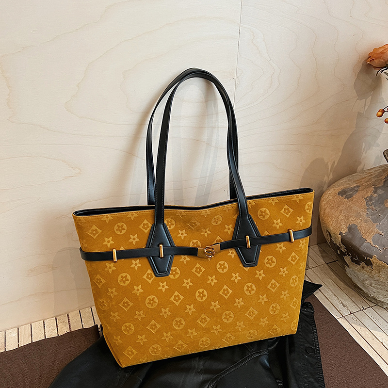 跨境大容量手提托特包百搭bags老花复古麂皮绒腋下包高级潮单肩包