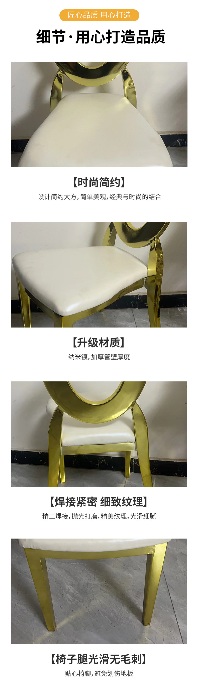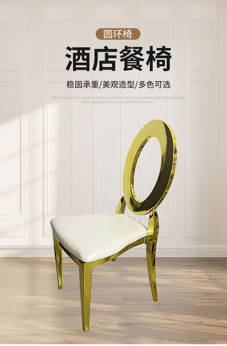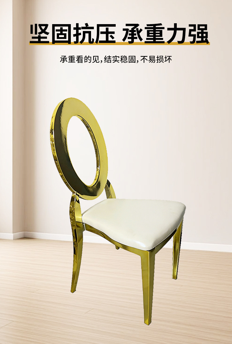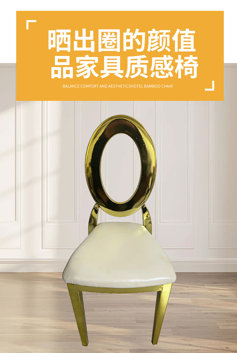 圆环靠背椅酒店宴会厅简约轻奢餐椅婚庆典礼金色镂空椭圆靠背椅子