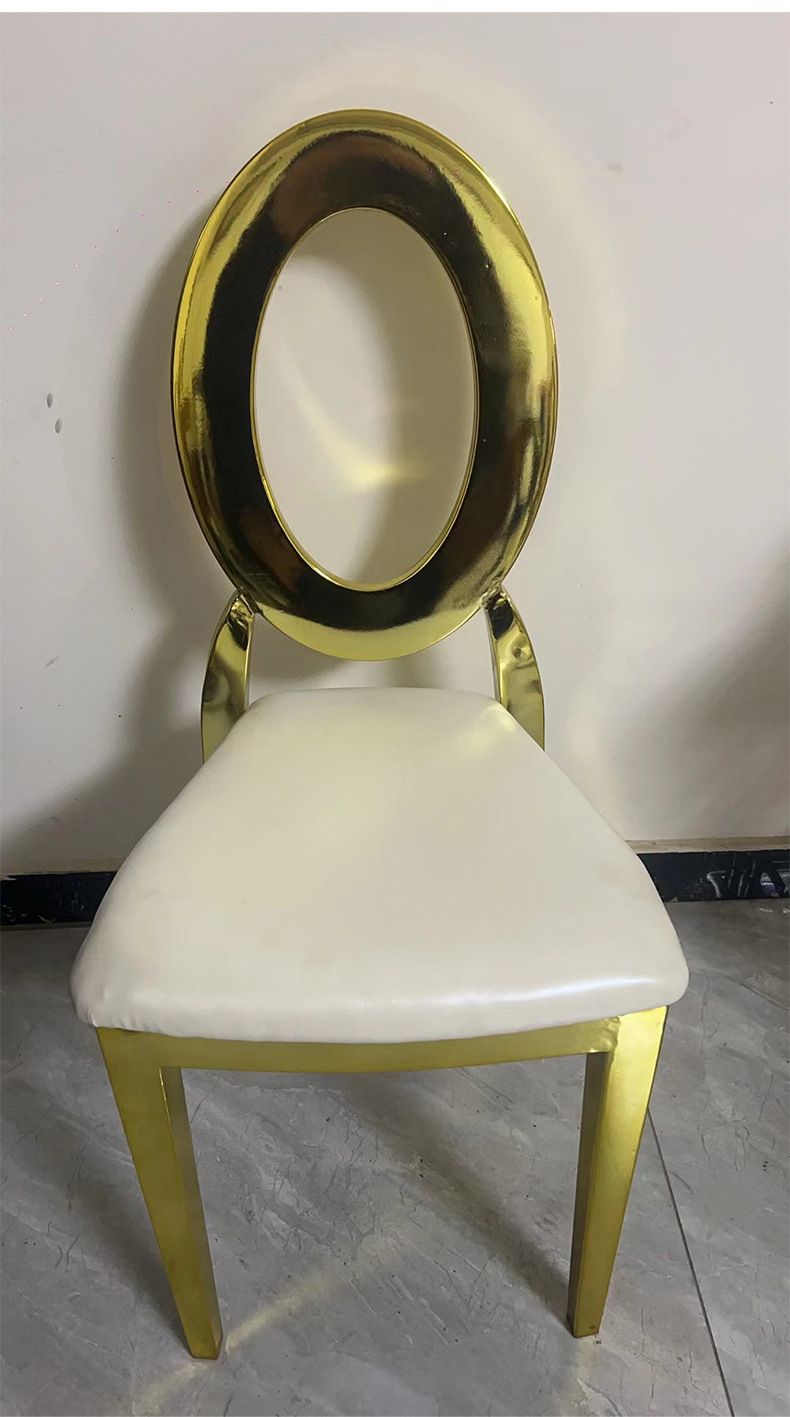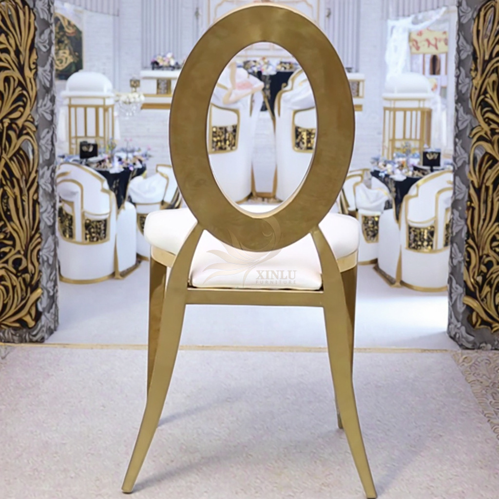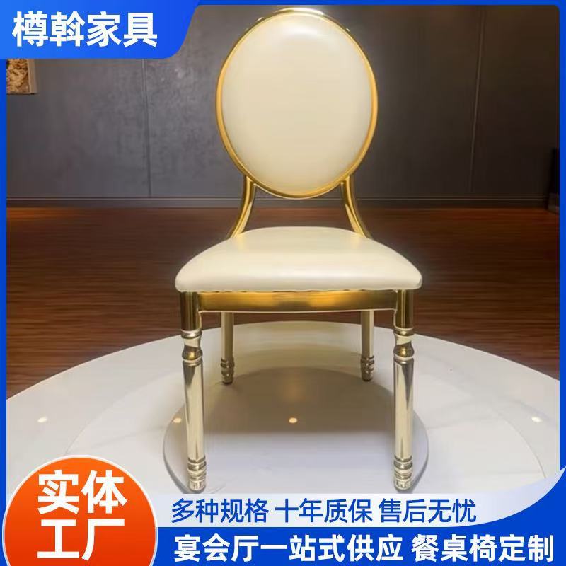 圆环靠背椅酒店宴会厅简约轻奢餐椅婚庆典礼金色镂空椭圆靠背椅子