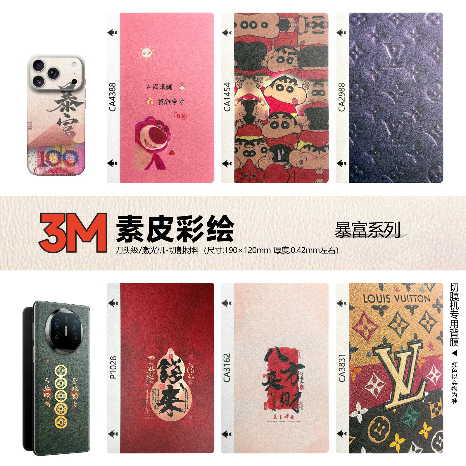 3M素皮彩绘手机背膜素皮压纹背膜折叠屏全包膜切膜机通用耗材批发