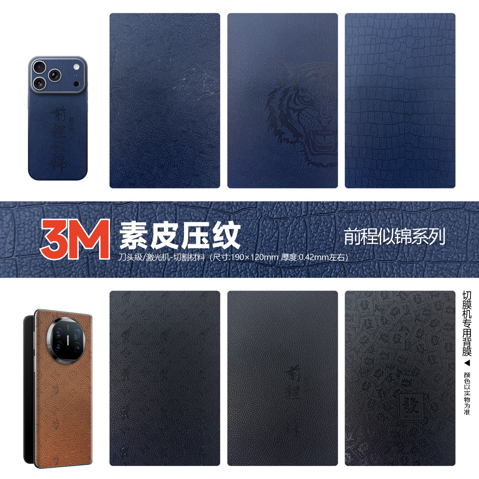 3M超薄款国风款素皮彩绘手机背膜切膜机通用素皮压纹折叠屏全包膜