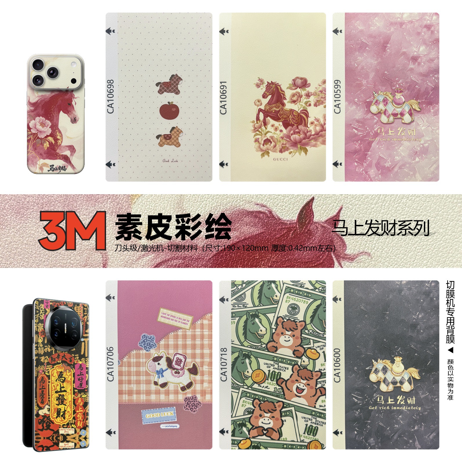 马年新款3M素皮彩绘压纹浮雕手机背膜折叠屏直屏后膜切膜机通用膜