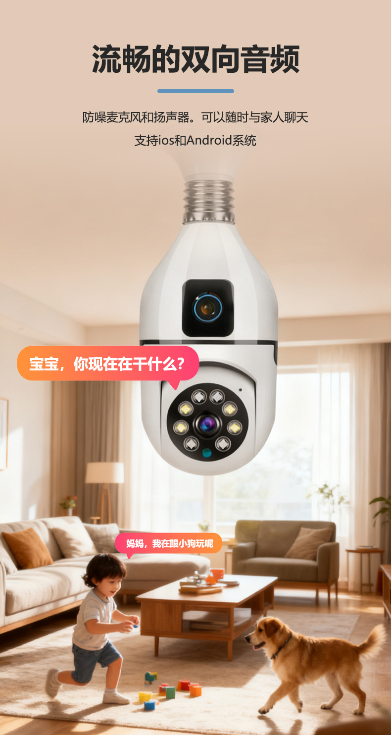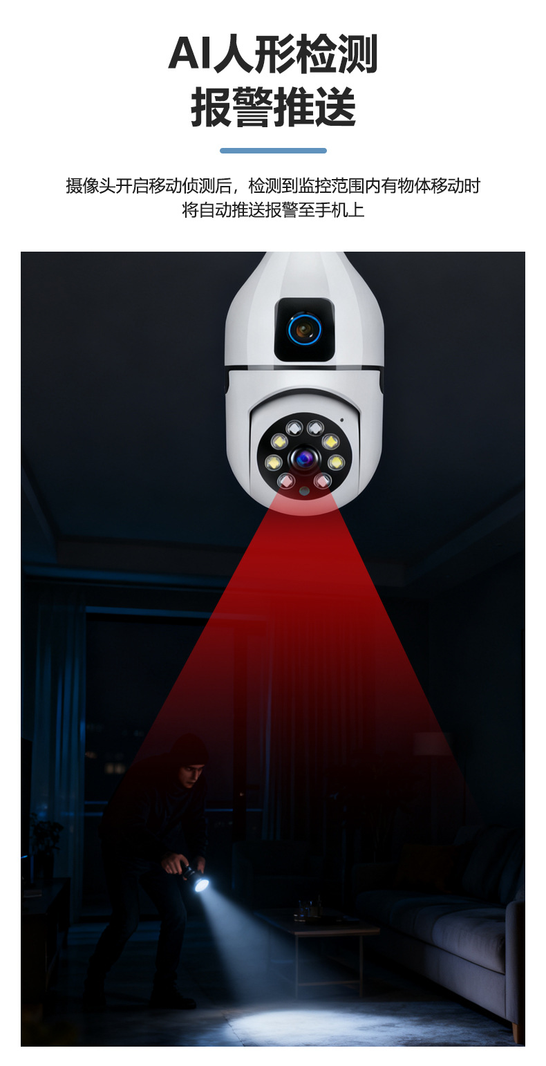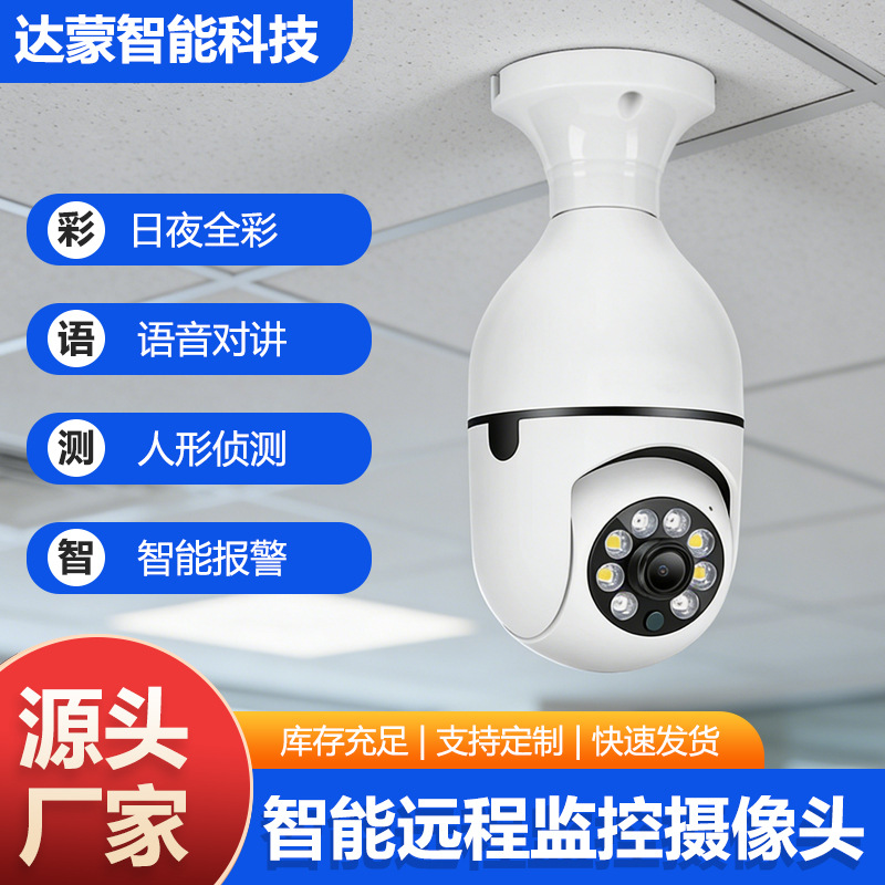 双目灯泡摄像机灯头式摄像头E27监控室内WiFi 夜视高清跨境CCTV