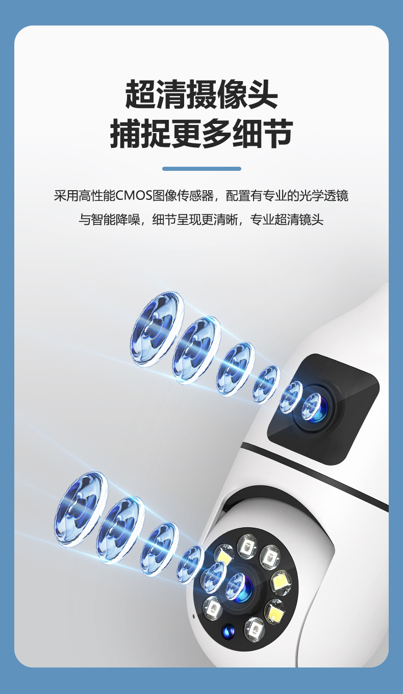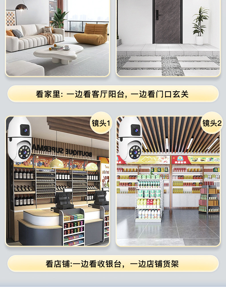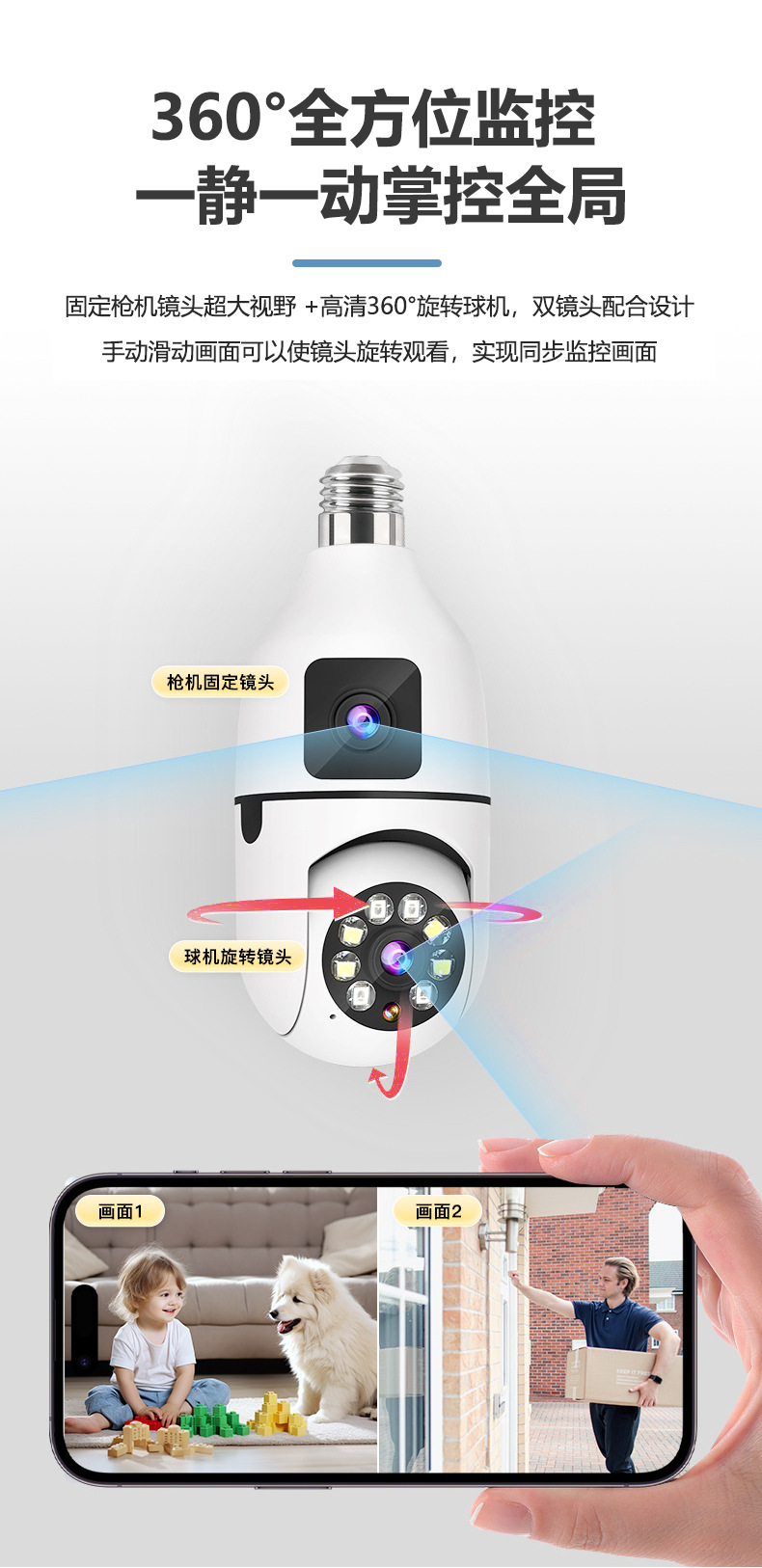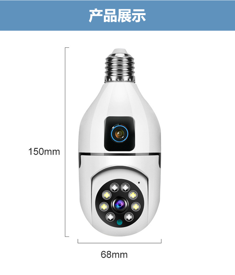 3MP跨境爆款双目灯泡摄像头无线双画面全彩高清夜视360室内双光监