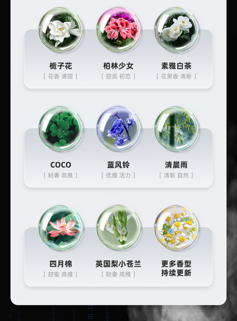 产品规格 海洋,茉香,真我,邂逅,希尔顿,香格里拉,栀子花,柏林少女,白茶,COCO,蓝风铃