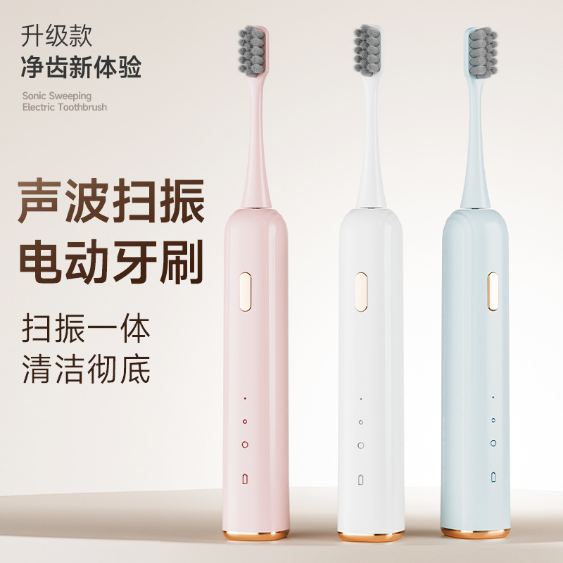 跨境全自动智能电动牙刷扫振一体无线充电防水软毛电动刷牙批发家