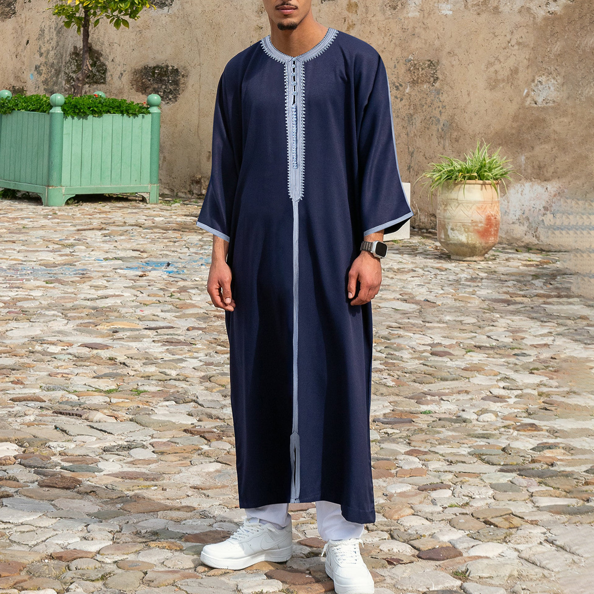中东男士袍子摩洛哥风格长袖刺绣手工盘扣节日送礼祈祷阿拉伯男装