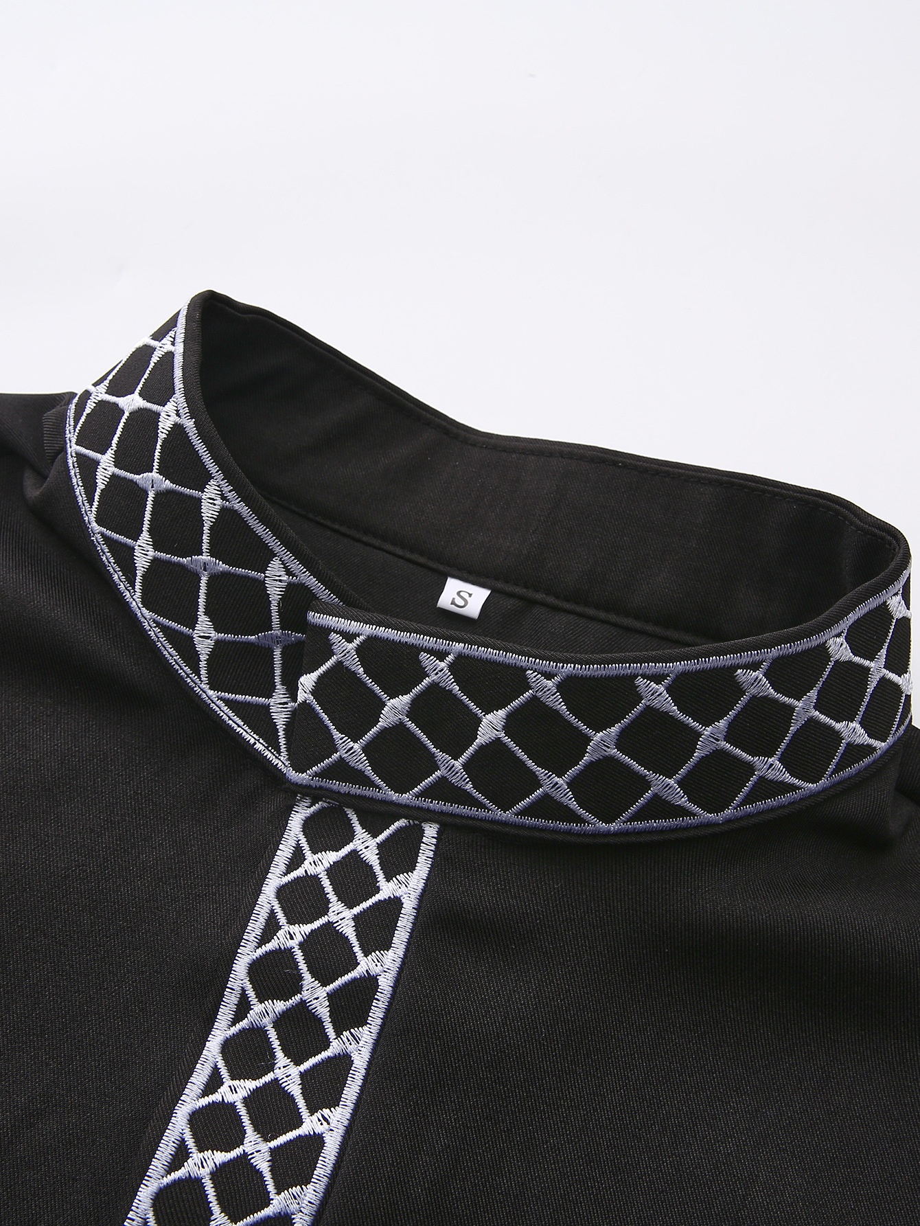 外国貿易クロスボーダー男性ロングシャツカジュアル青年普通黒ムスリム刺繍ガウン113824