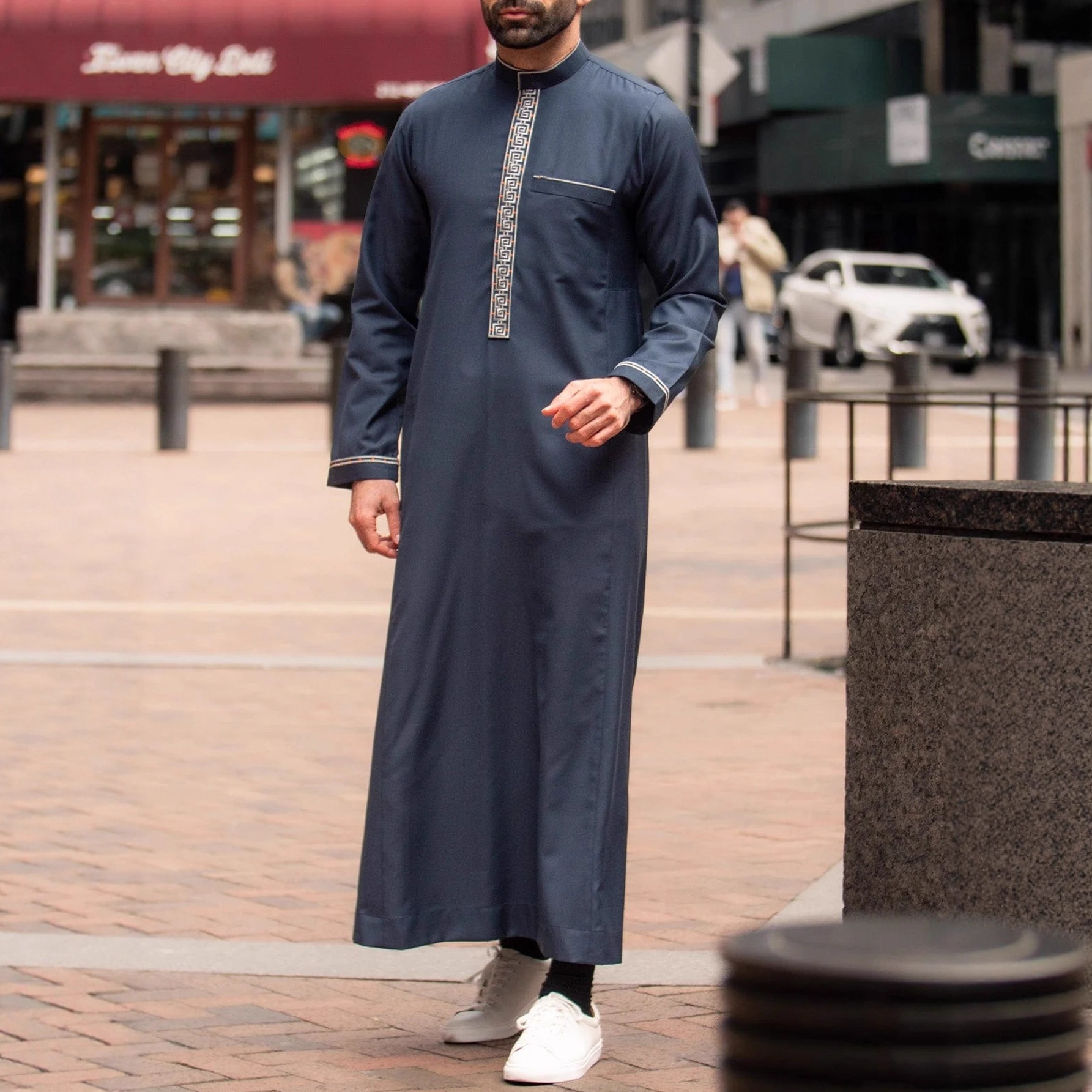 クロスボーダー中東メンズローブ長袖刺繍スタンドカラーアラビアルーズメンズイスラム教徒ローブ(在庫あり)