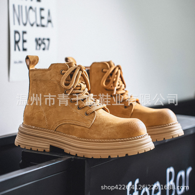 马丁靴情侣2025新款真皮百搭复古大黄靴男潮流厚底短靴户外登山靴