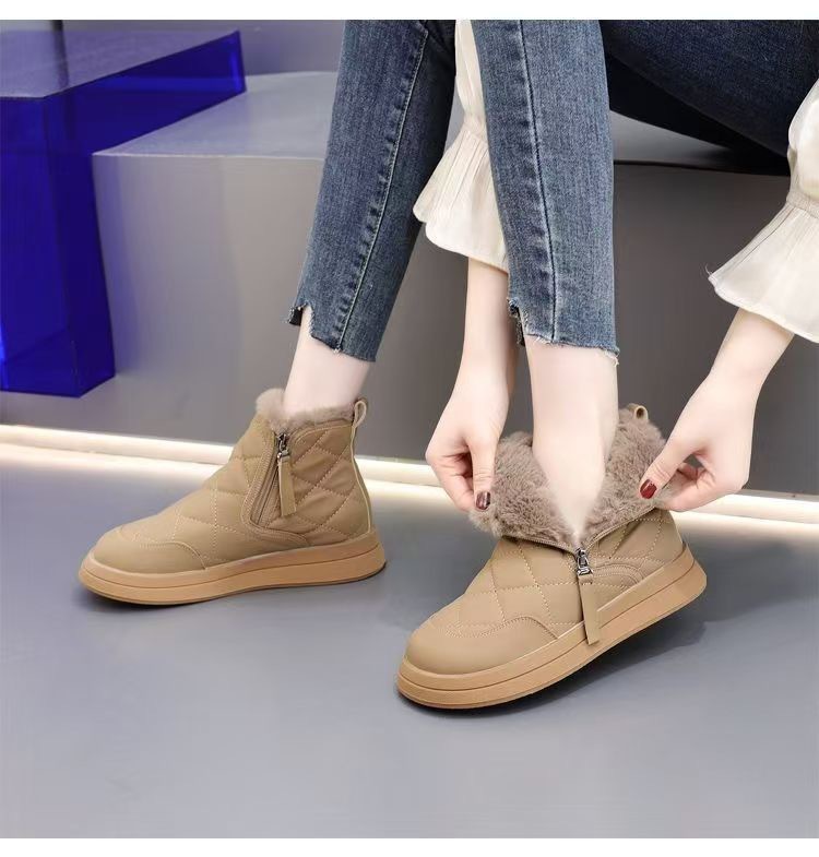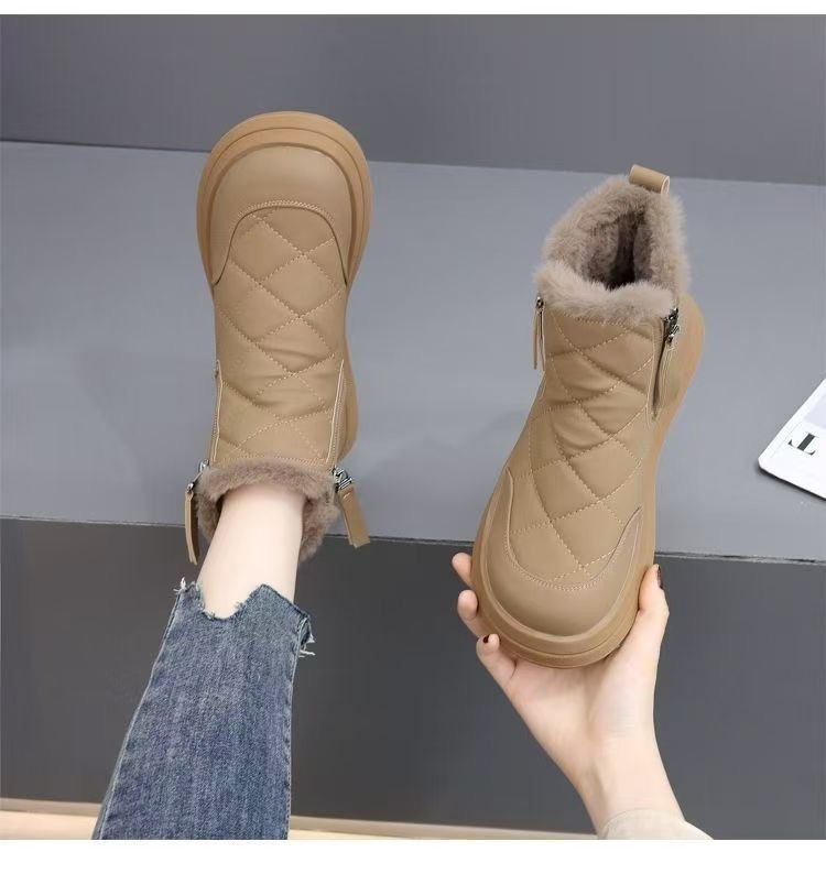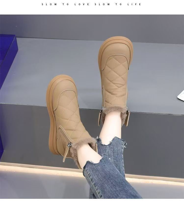 2025年秋新作、身長アップ効果のあるレディースマーティンブーツ、小柄な方向け、本革厚底ショートブーツ、冬用、裏起毛、滑り止め、保温シューズ