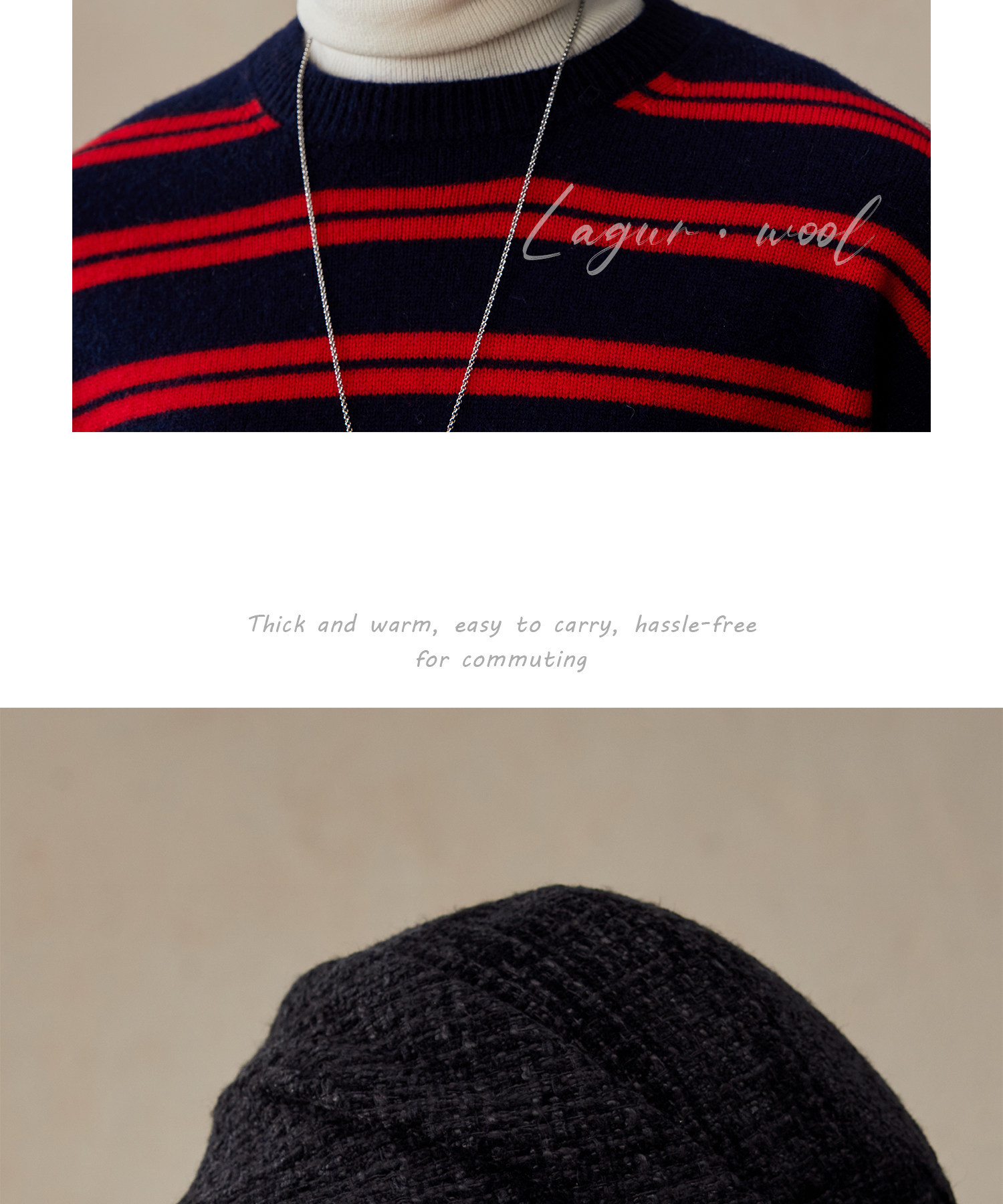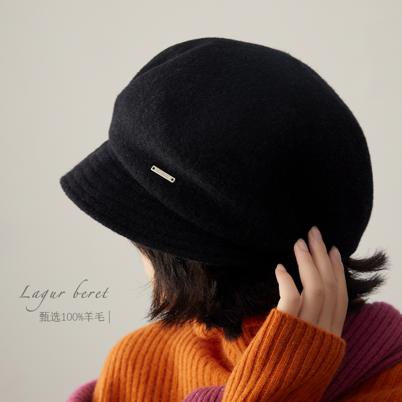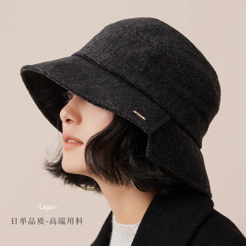 Lagur<日系小众山本风>极简黑灰羊毛渔夫帽保暖加厚堆堆冷帽女