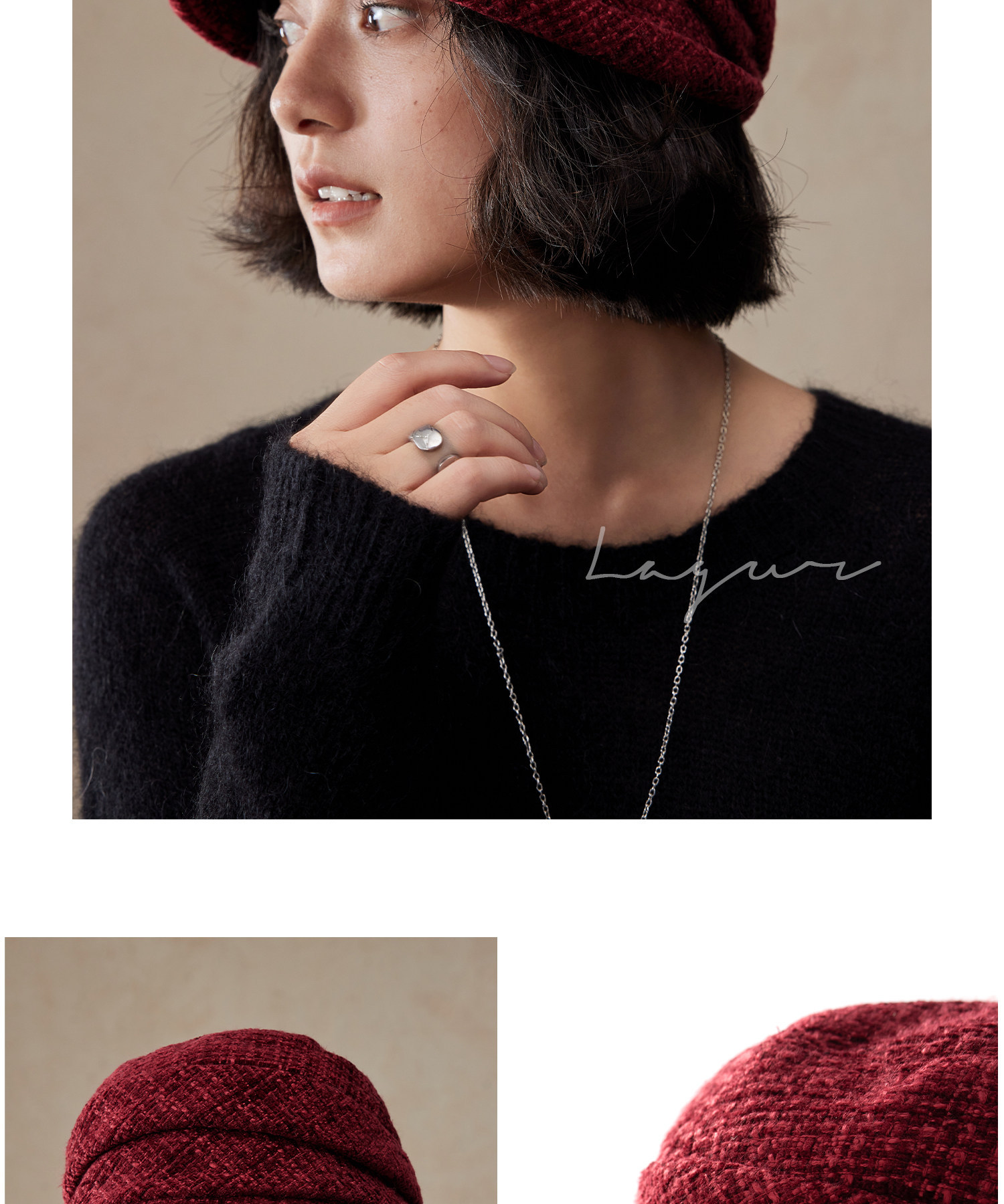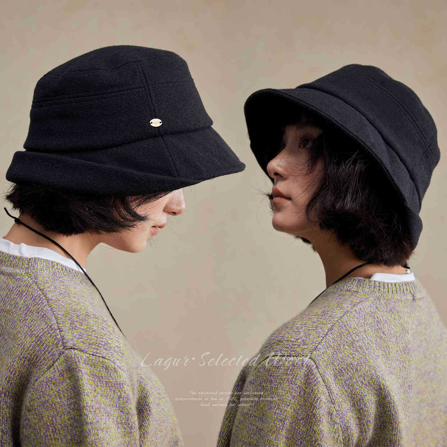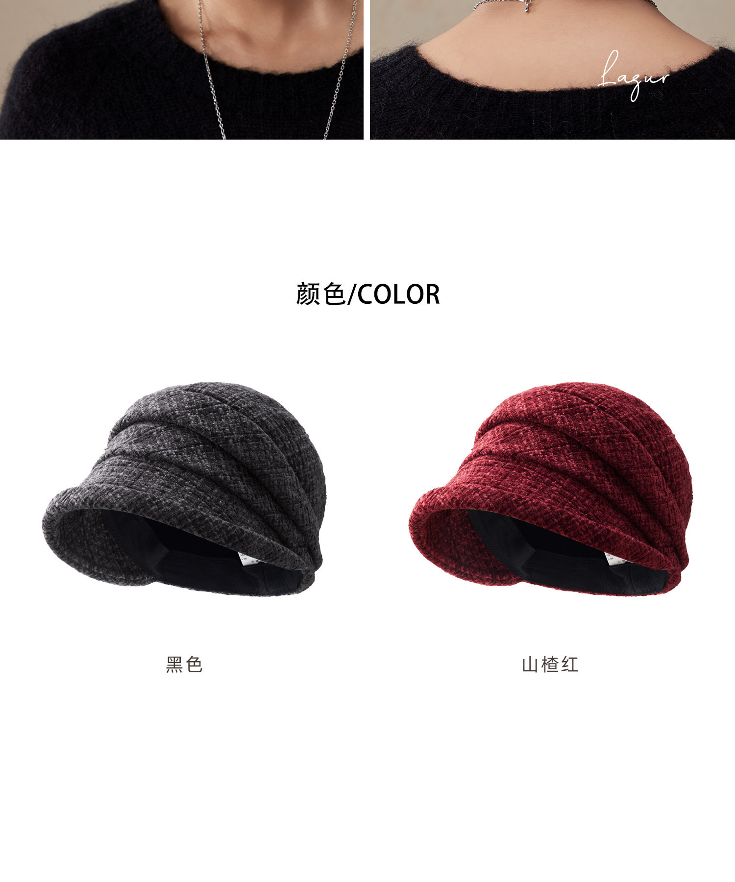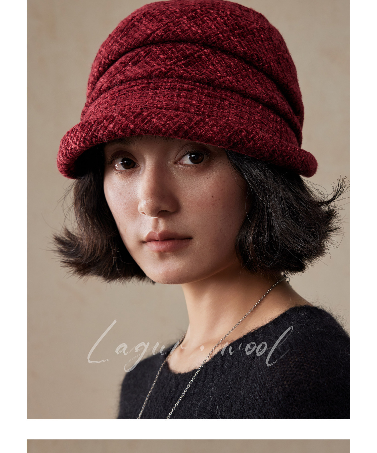 Lagur(经典bi入~)羊毛小檐卷边褶皱优雅渔夫帽加绒香风帽子女冬