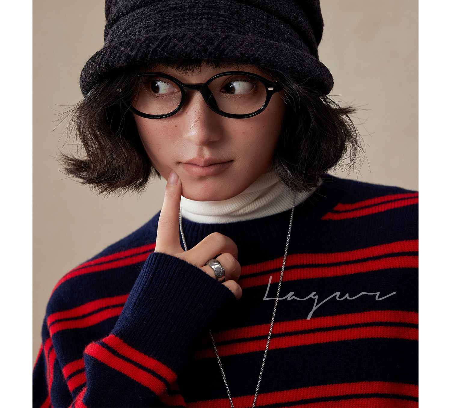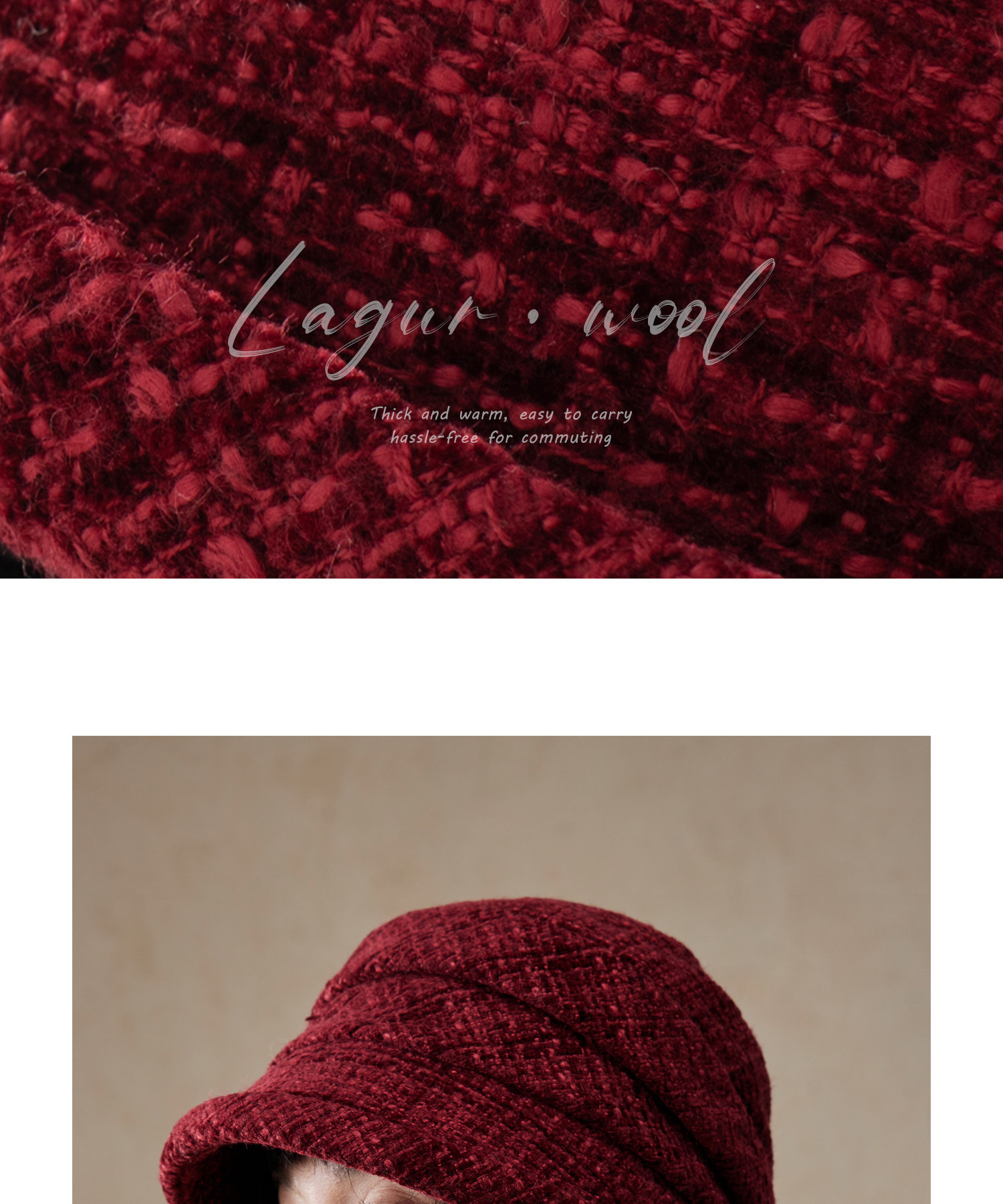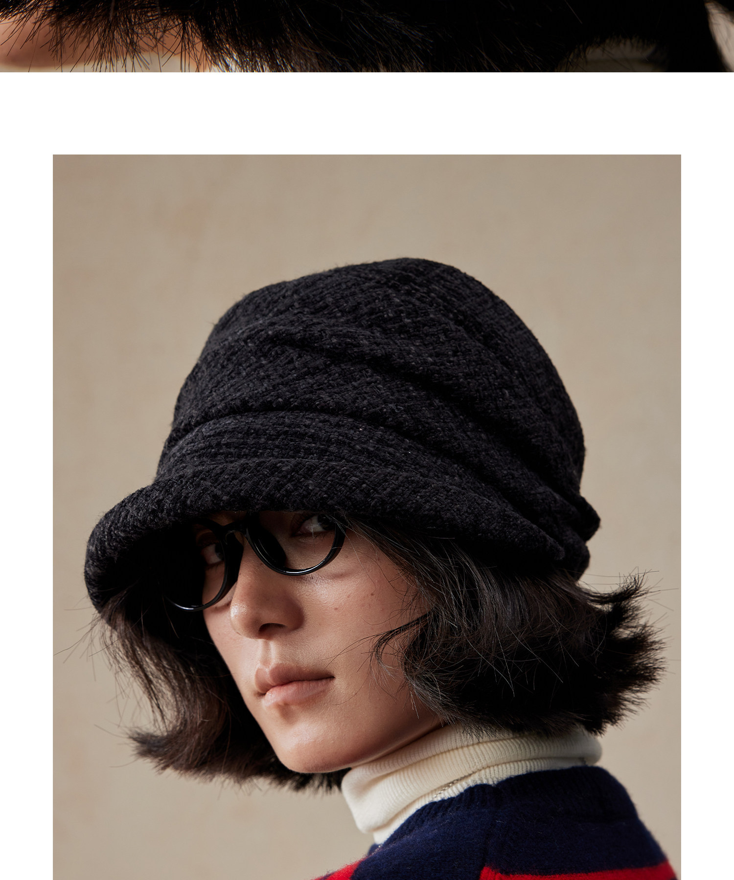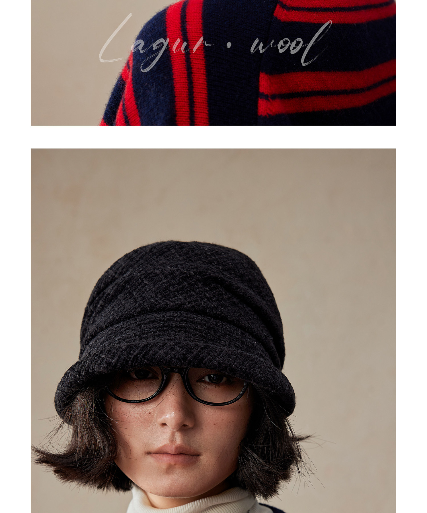 Lagur(经典bi入~)羊毛小檐卷边褶皱优雅渔夫帽加绒香风帽子女冬