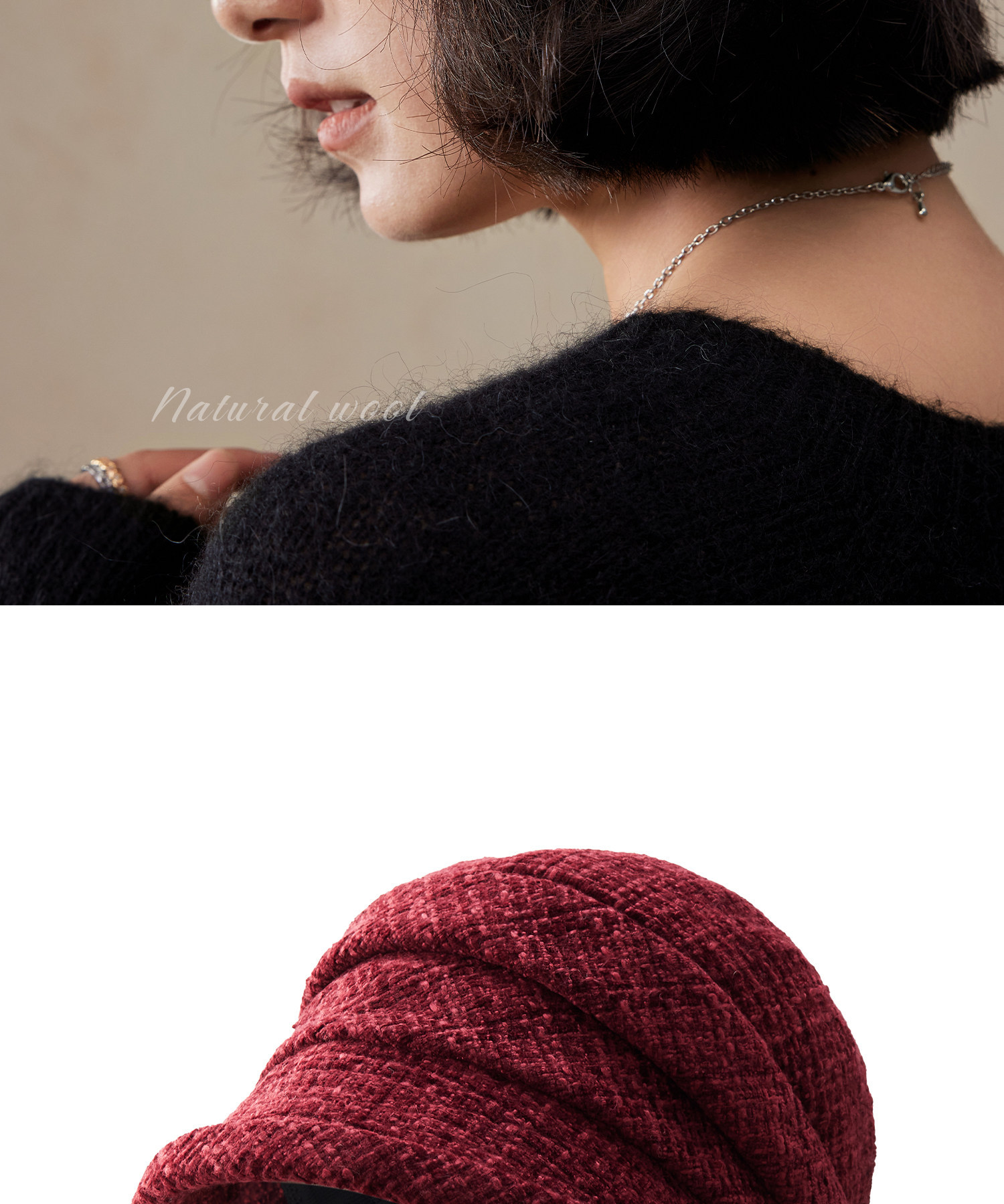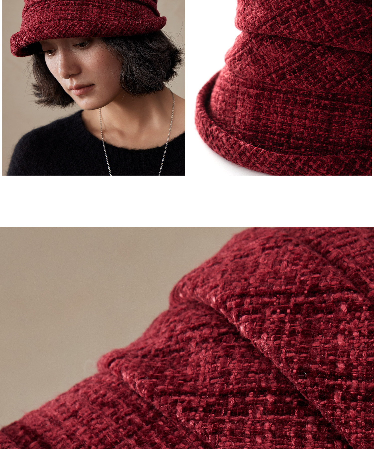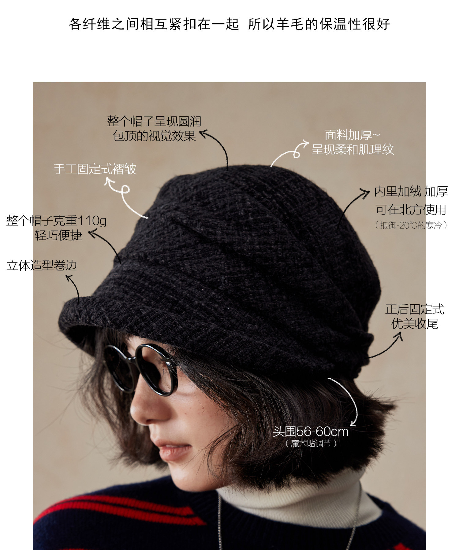 货号 205-花呢雪尼尔纱羊毛混纺帽